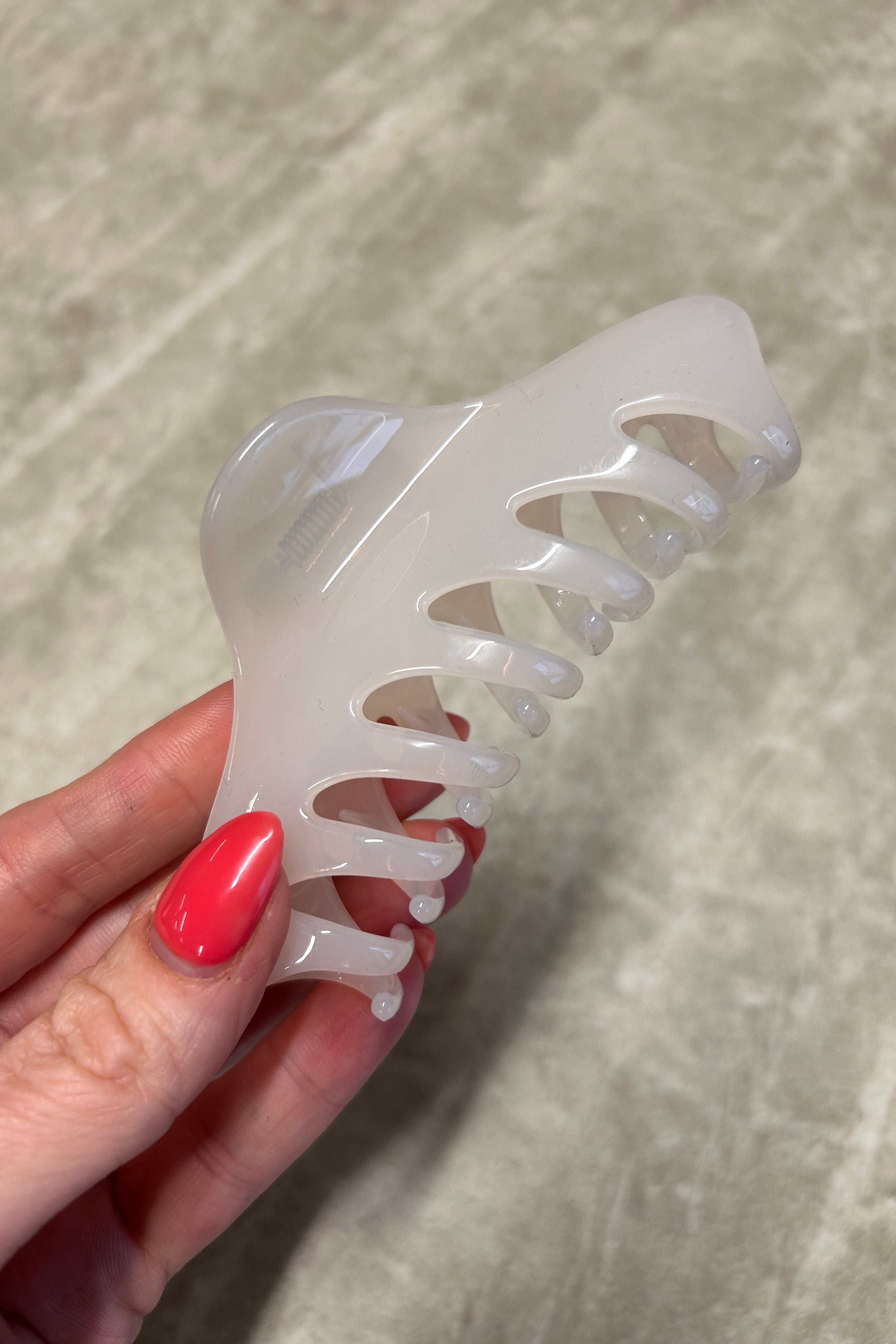 Den rene hvide farve giver et let, friskt og tidløst udtryk. Et enkelt og stilfuldt accessory til håret, der løfter dit look med ro og elegance – perfekt til både hverdag og særlige øjeblikke.