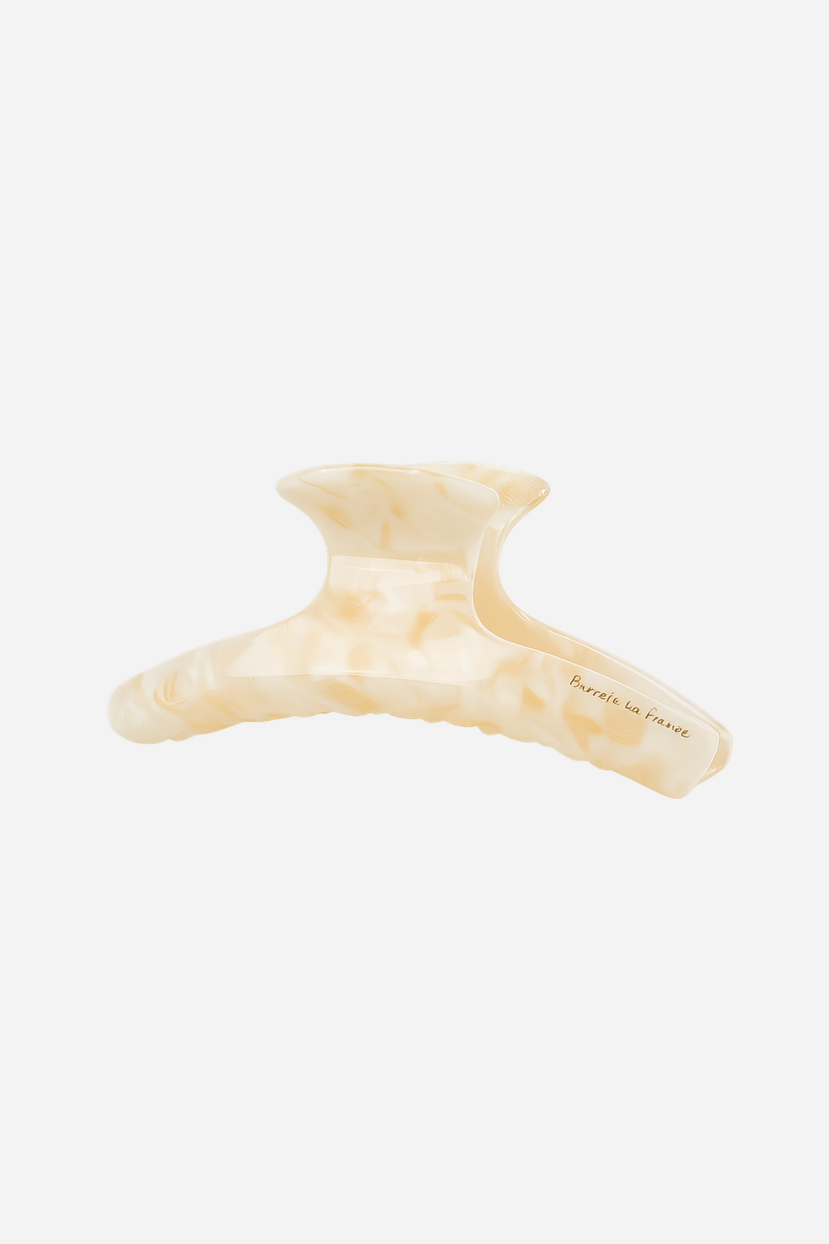 Denne hårklemme fra Andcopenhagen i farven off white er et stilrent valg til både hverdag og fest. Det bløde, marmor-inspirerede udtryk giver et eksklusivt look, mens den solide form sikrer et godt greb i håret. Perfekt til alt fra løse opsætninger til en hurtig, chic frisure, når det skal være nemt – men stadig elegant.