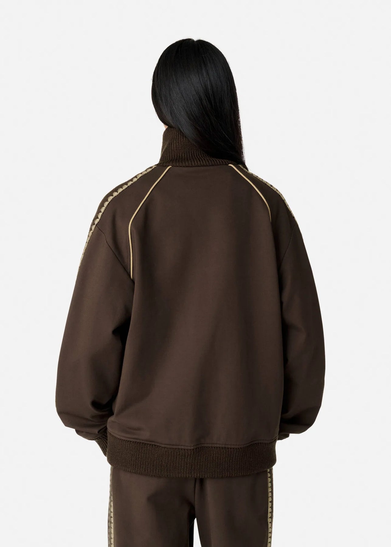 Skåret af fleksibel ponte, har Carter track-jakken en behagelig, afslappet pasform, der afsluttes med kontrasterende ribkanter. En mærket lynlås og broderede ærmestriber fuldender denne jakke.