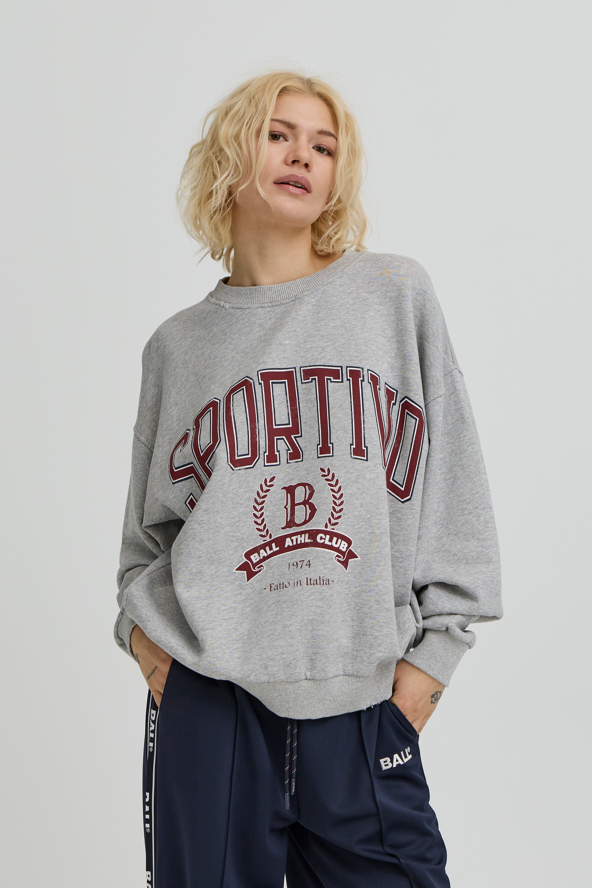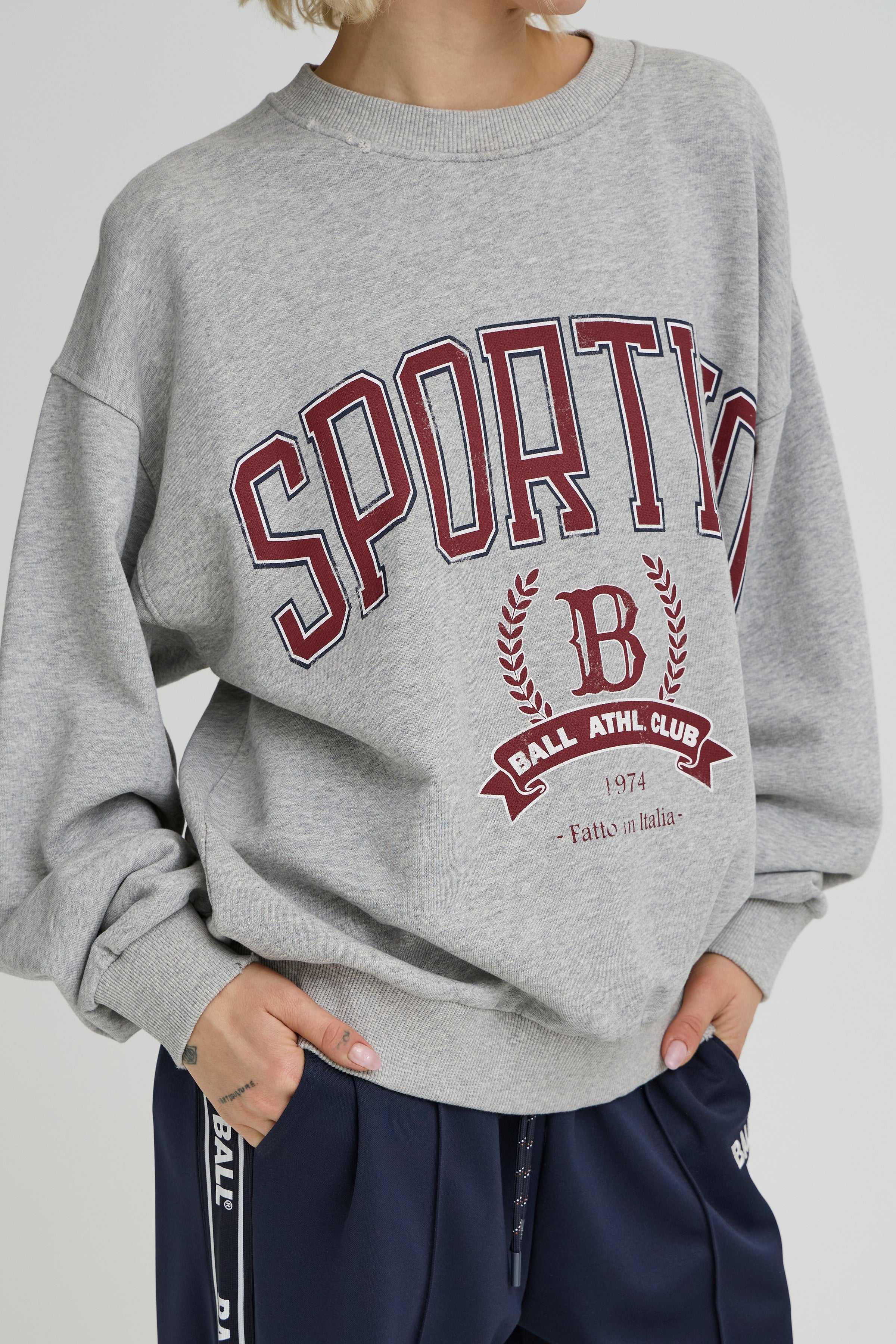 Denne grå melange Sportivo sweatshirt fra Ball kombinerer komfort og stil på en afslappet måde. Trøjen har et mørkerødt print foran, rund hals og lange ærmer, hvilket gør den perfekt til både hverdag og afslapning. Den bløde kvalitet og det casual snit sikrer en lækker og behagelig pasform.