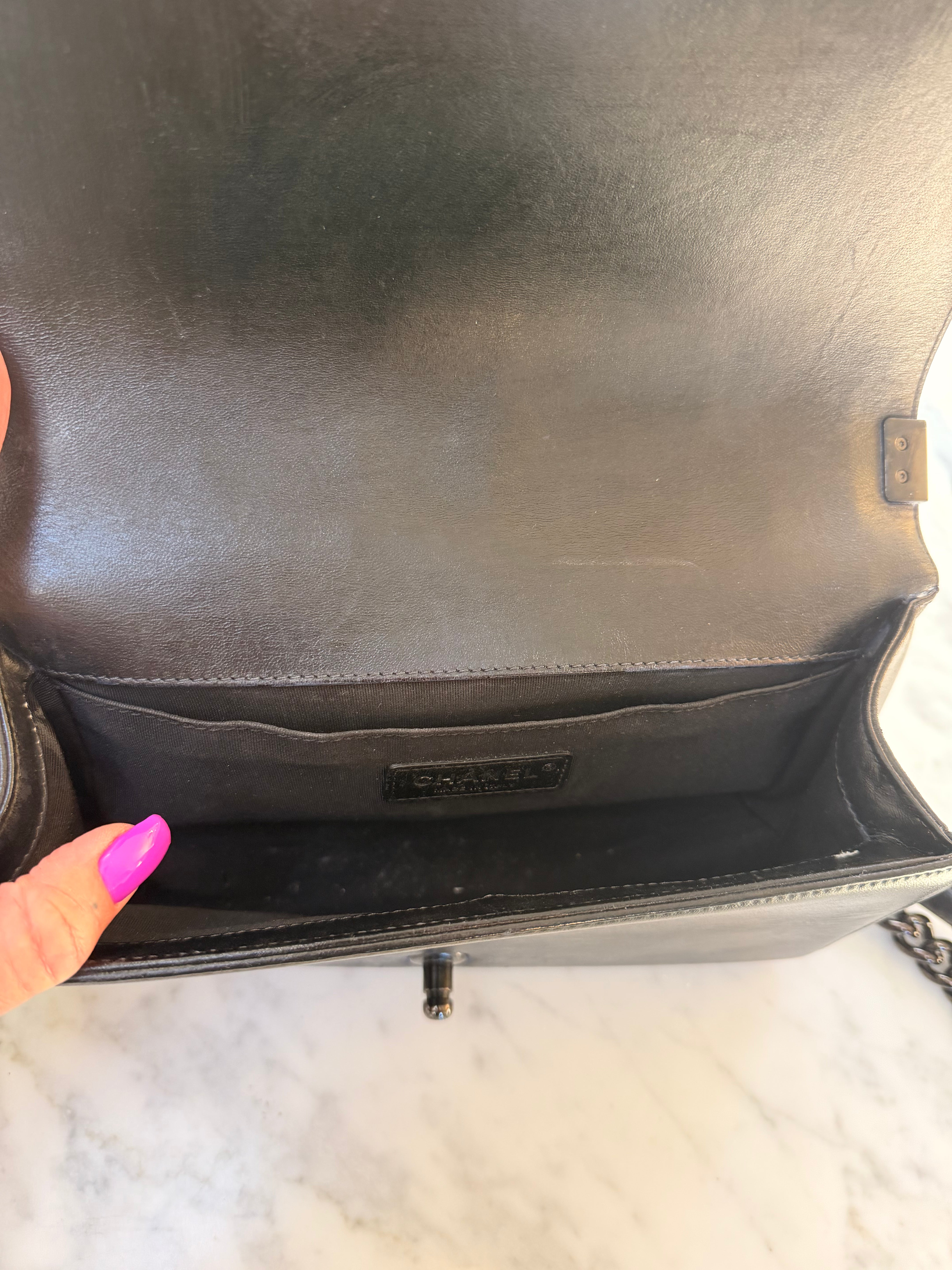 Chanel har siden 1909 defineret luksuriøs mode med deres innovative designs og kompromisløse kvalitet. Boy-modellen er et moderne ikon, der forener husets klassiske håndværk med nutidig elegance, berømt for sin karakteristiske låsemekanisme og kædestrop i guld.
