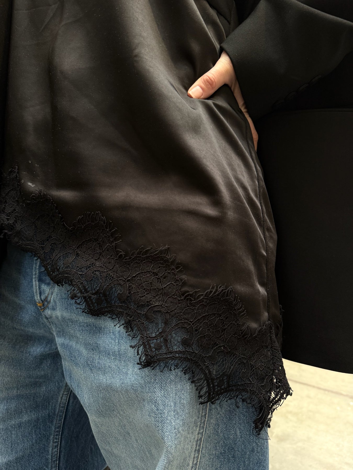 Denne smukke satin blondetop fra Coster Copenhagen er feminint og eksklusivt. Toppen er designet i en let og glansfuld satin kvalitet, fremstillet af 96% polyester og 4% elastan, som giver en elegant pasform med en behagelig strækbarhed.