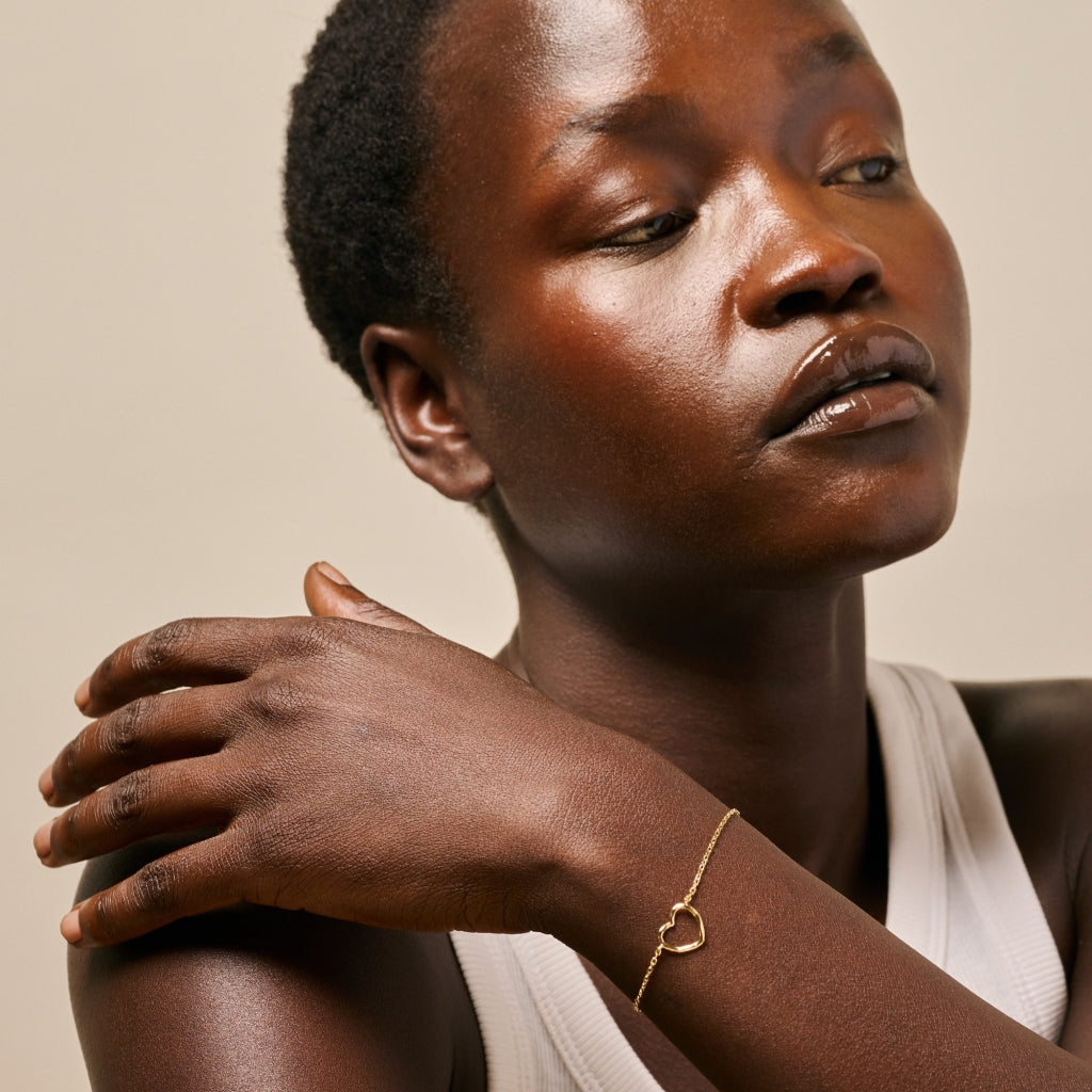 Organic Heart armbånd fra Enamel, er et af de fineste bud på et hjertearmbånd. Hjertet er stort, uden at være chunky, og udtrykket er simpelt, uden at være kedeligt. Læg især mærke til den smukke, håndlavede overflade på hjertet. Hjertearmbåndet blender smukt ind med dine andre armbånd.