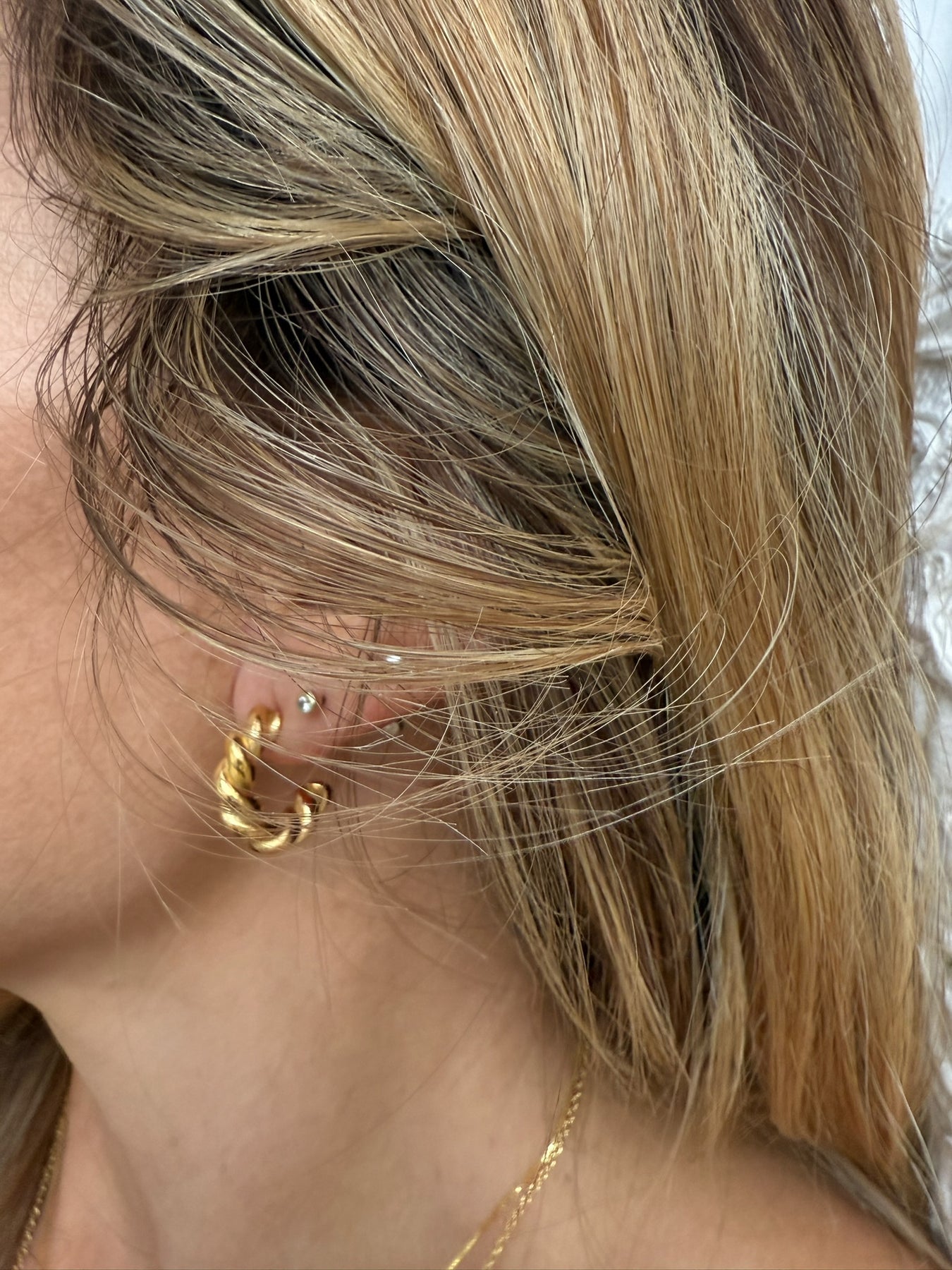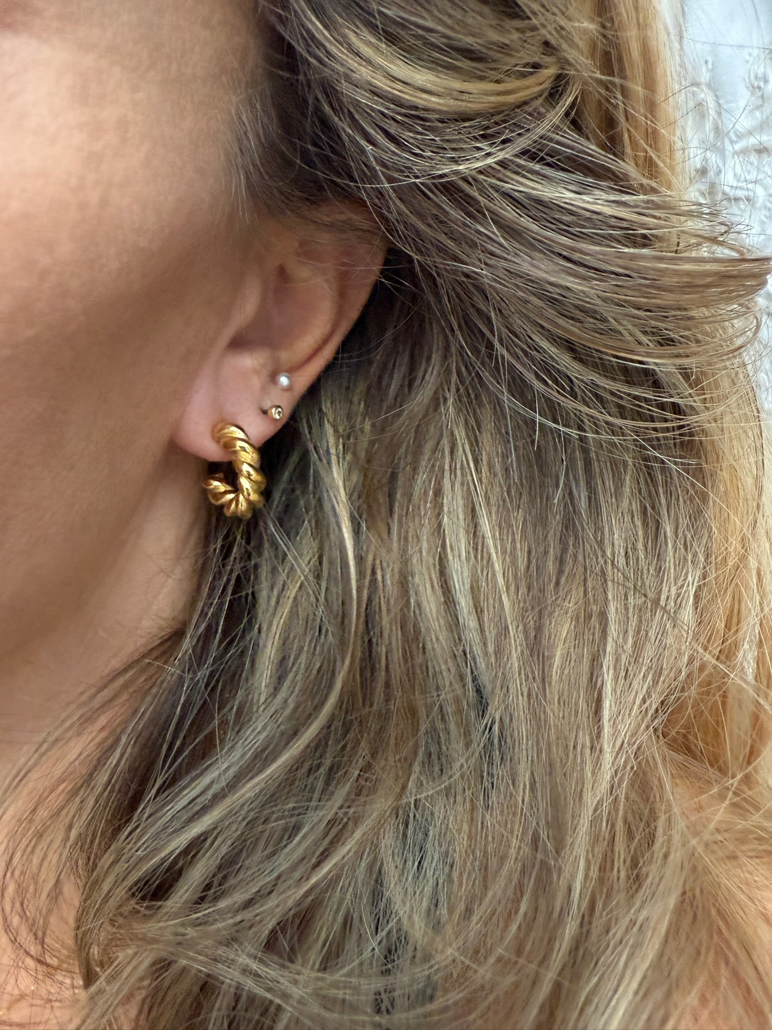 Disse Mila-øreringe fra Andcopenhagen har en karakteristisk snoet form. De er fremstillet med dobbelt guldbelægning og er 100 % nikkelfri og allergivenlige, så du kan bære dem uden bekymring.