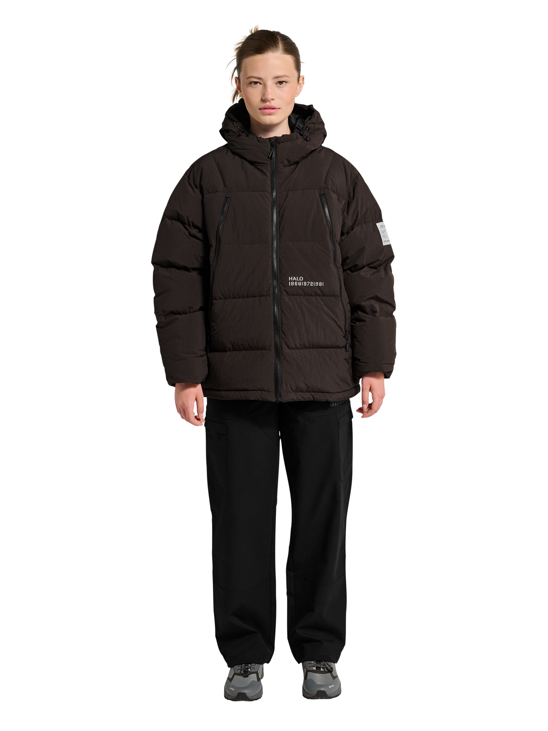 Du får rigeligt med plads til dine ejendele med to sidelommer, to store frontlommer med lynlås og en praktisk inderlomme. HALO-logoet på siden og det reflekterende print foran tilføjer et stilrent touch.