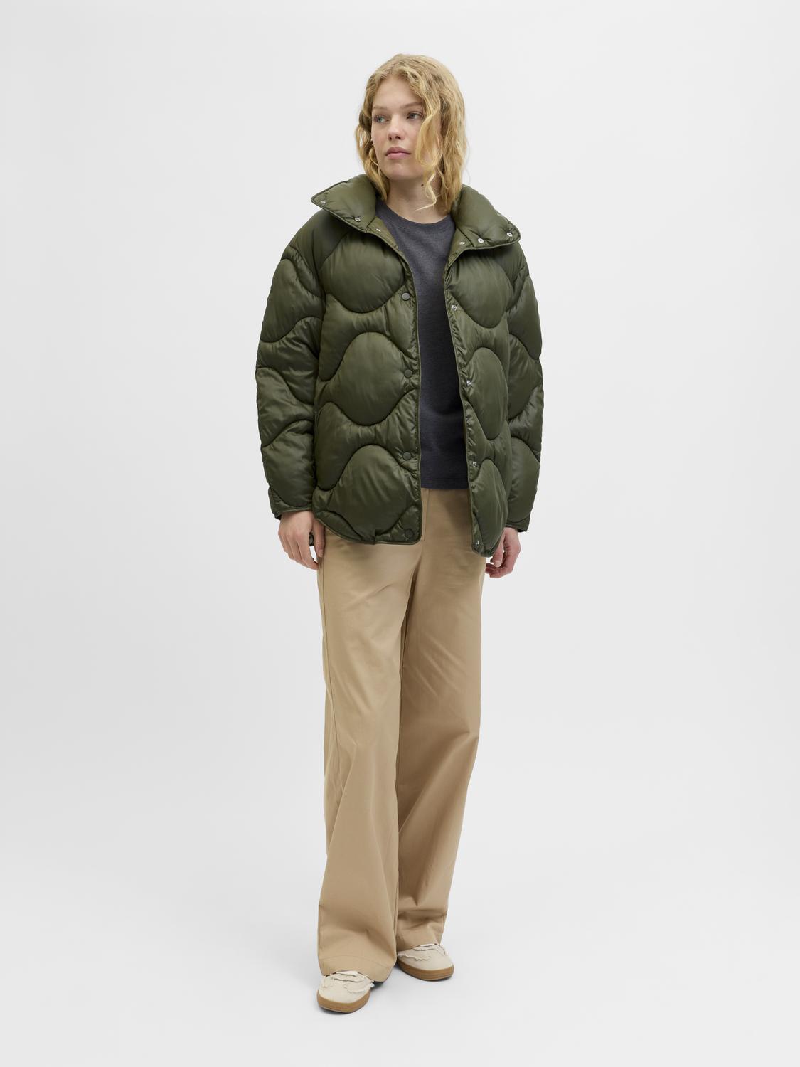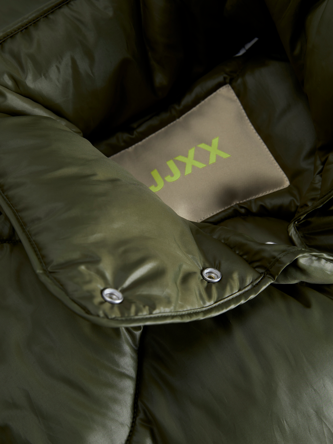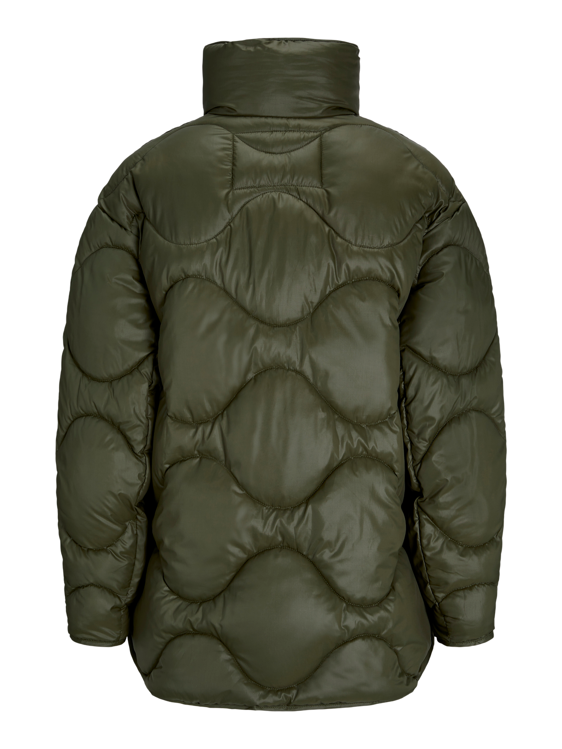 Quilted jakke fra JJXX. Jakken har en høj hals og lukkes med knapper hele vejen ned. Jakken har et fint mønster som er lavet med syningerne.