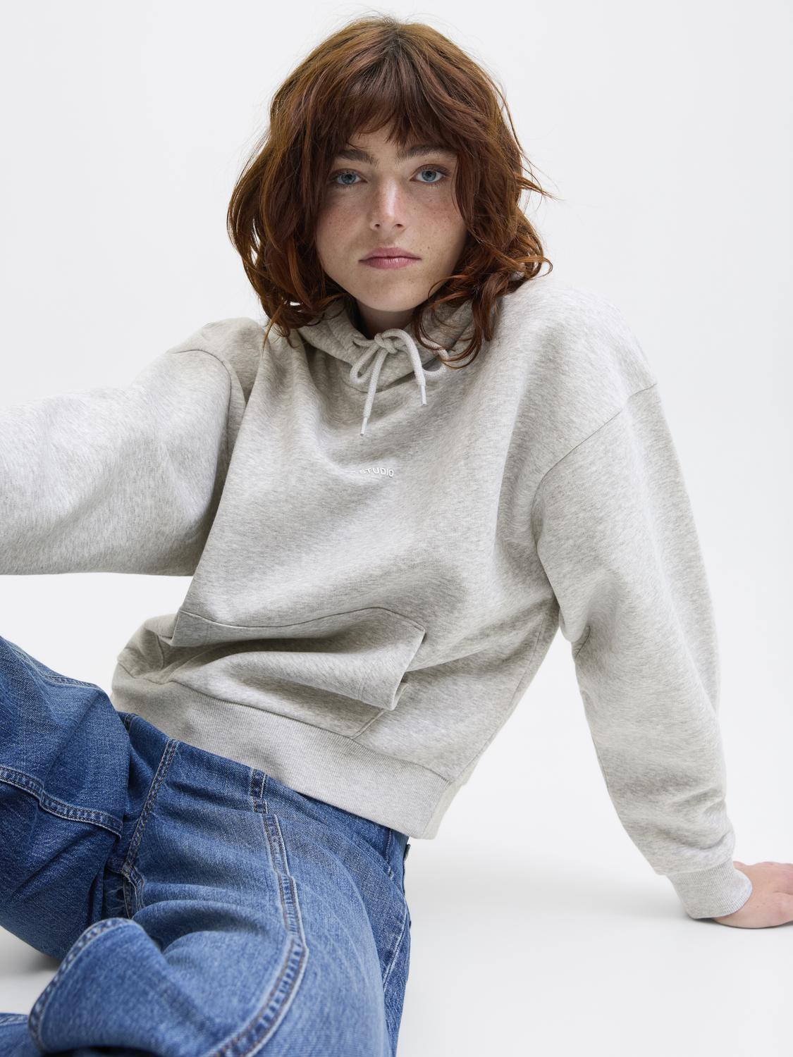 Denne grå JJXX-sweatshirt med broderet JJXX STUDIO-logo kombinerer blød komfort med praktisk design. Den bløde bomuldsblanding sikrer en behagelig oplevelse under afslapning derhjemme, mens den løse pasform giver fri bevægelse.