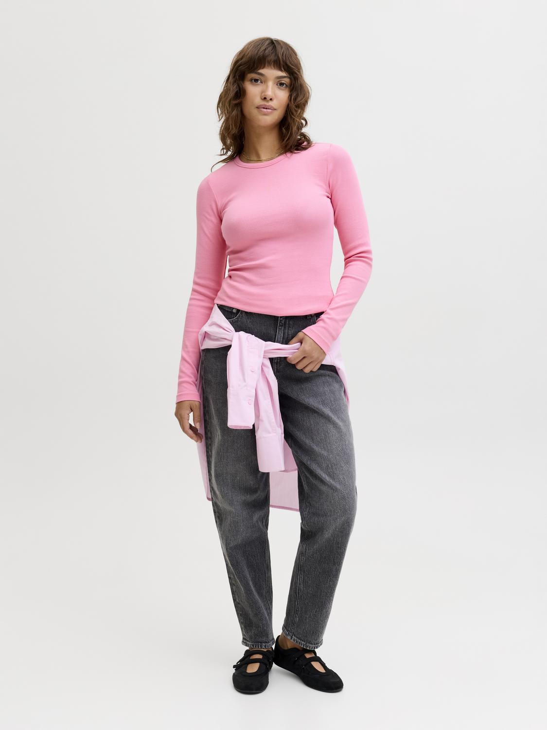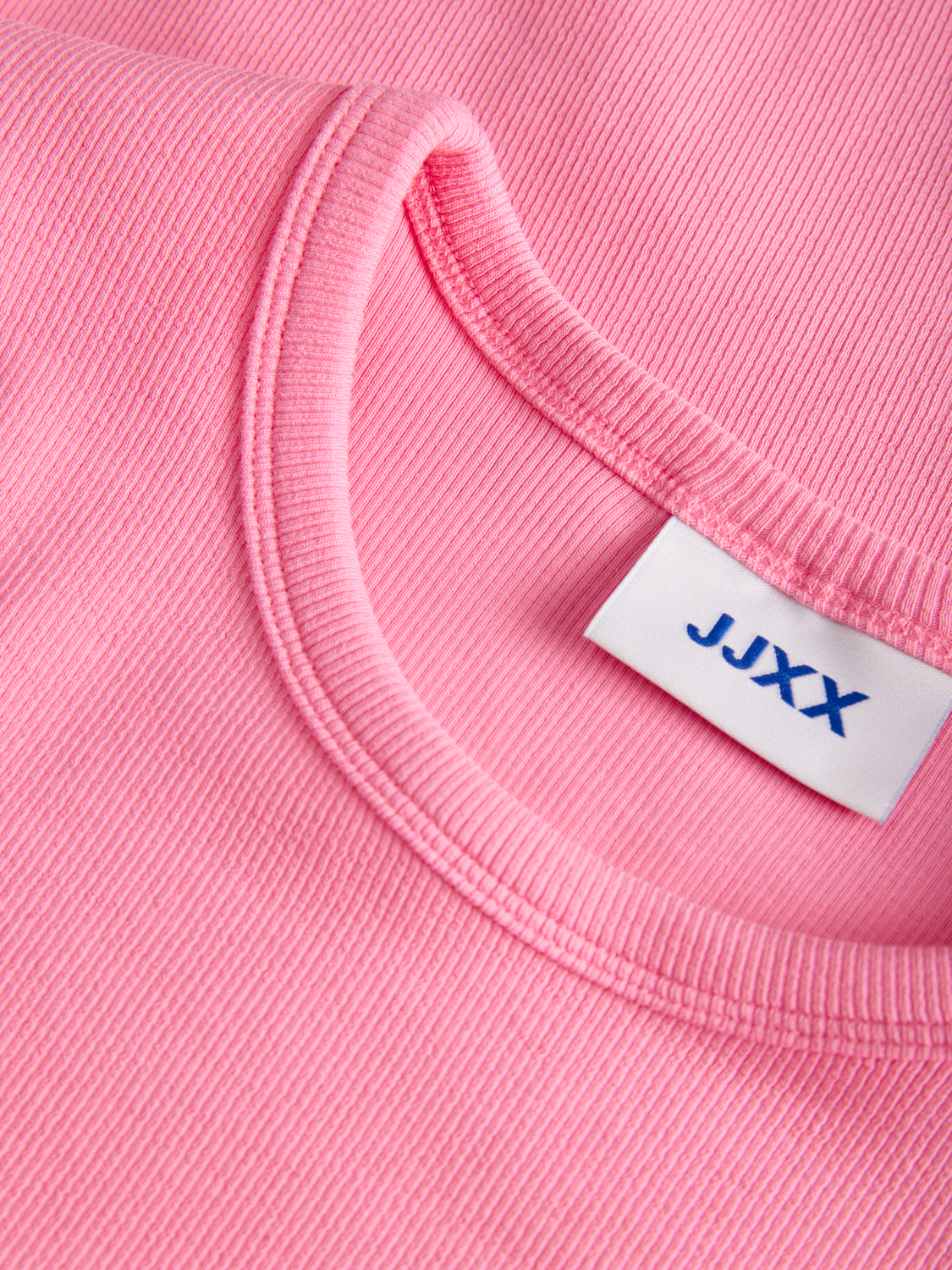 Langærmet let bluse i rib med en rund halsudskæring og en behagelig stretchfit. Den er fremstillet af økologisk bomuld med en lille andel elastan, hvilket sikrer både komfort og bevægelsesfrihed. Denne model fra JJXX har farven Morning Glory giver et frisk og feminint touch til garderoben.