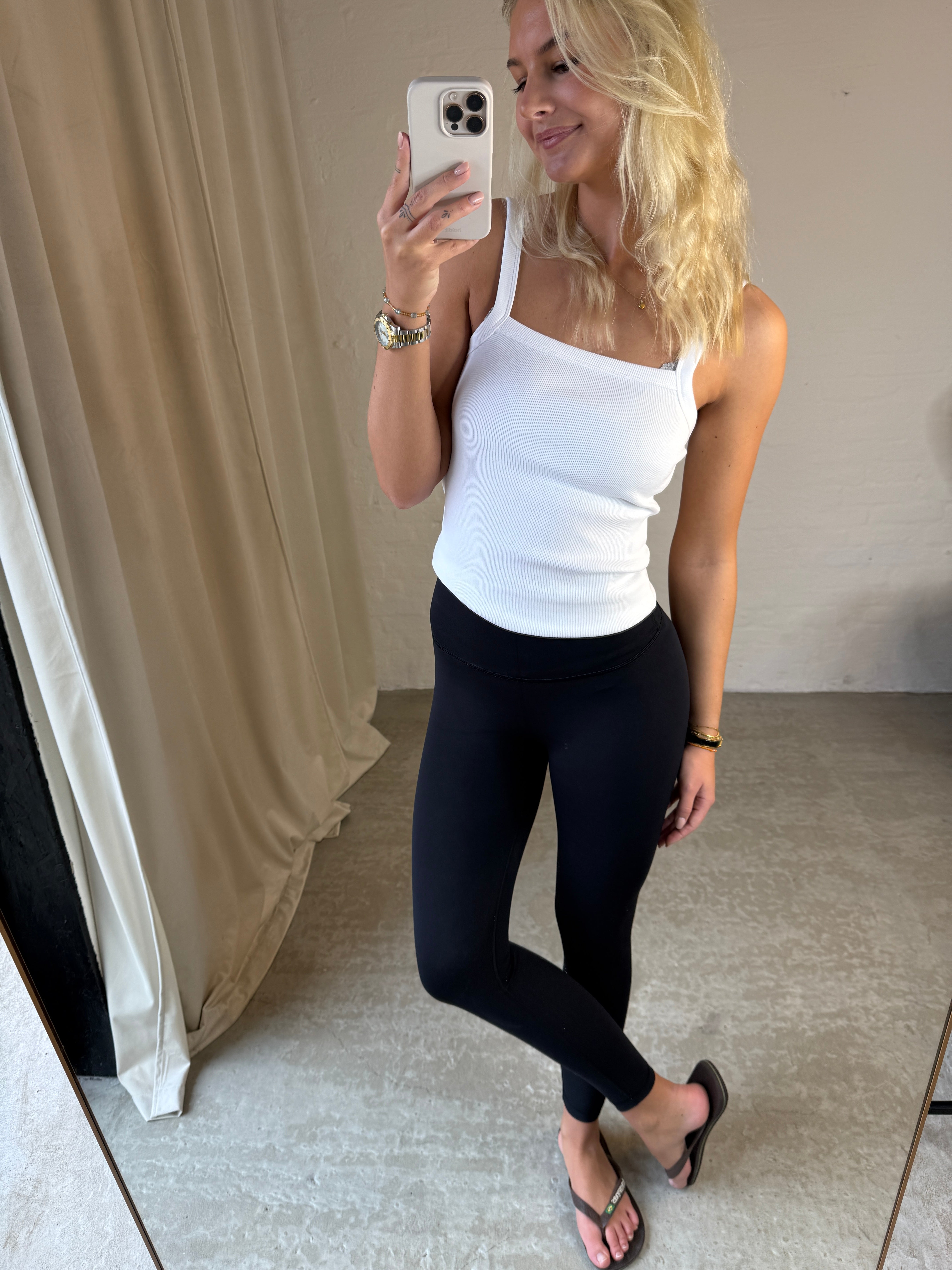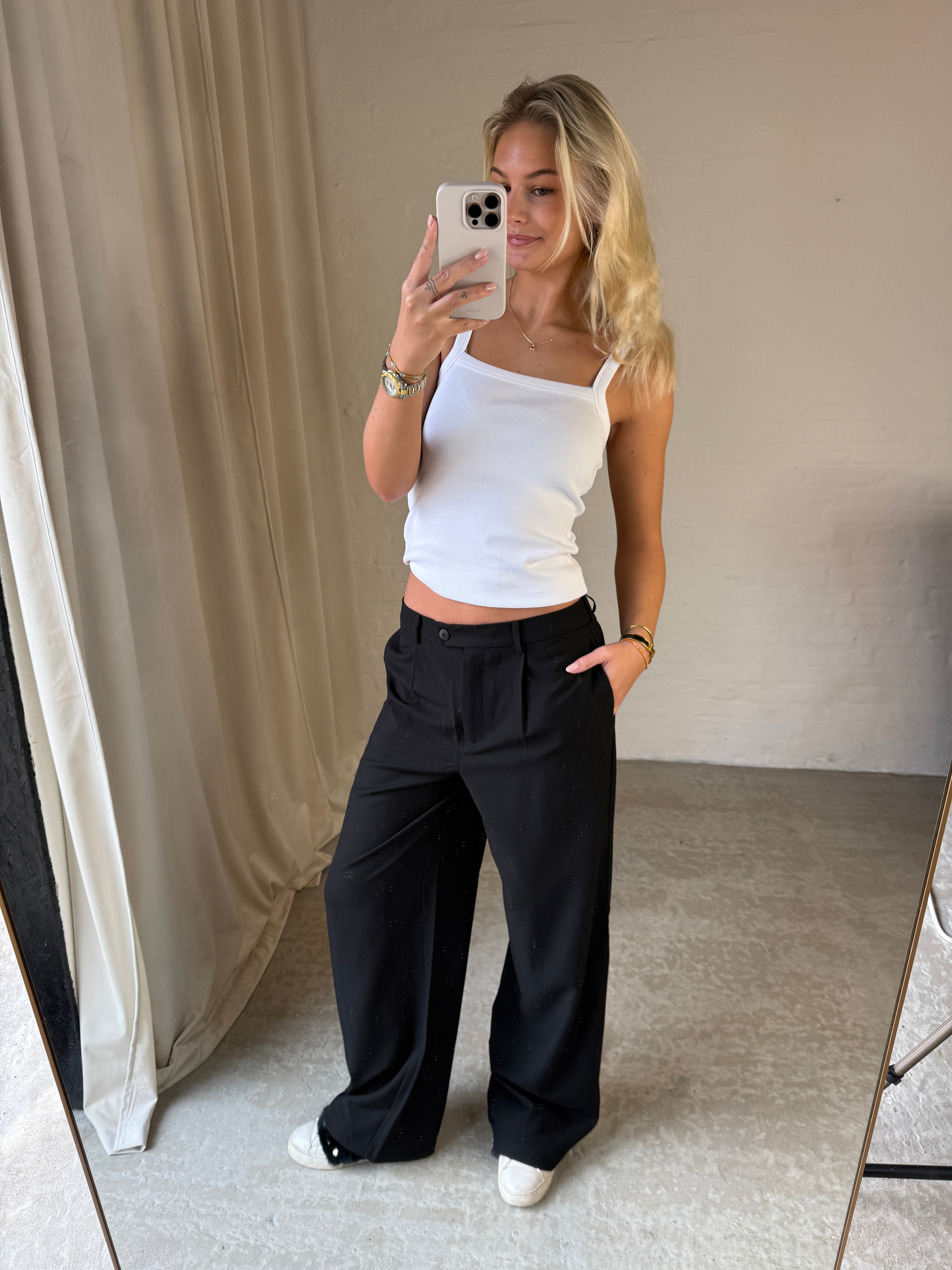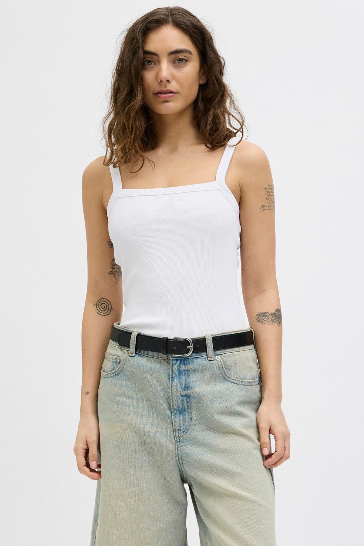 En basis tanktop med firkantet halsudskæring og uden ærmer, som er et must i garderoben. Den ribstrikkede kvalitet giver et behageligt stretch og en god pasform, hvilket gør den let at style.