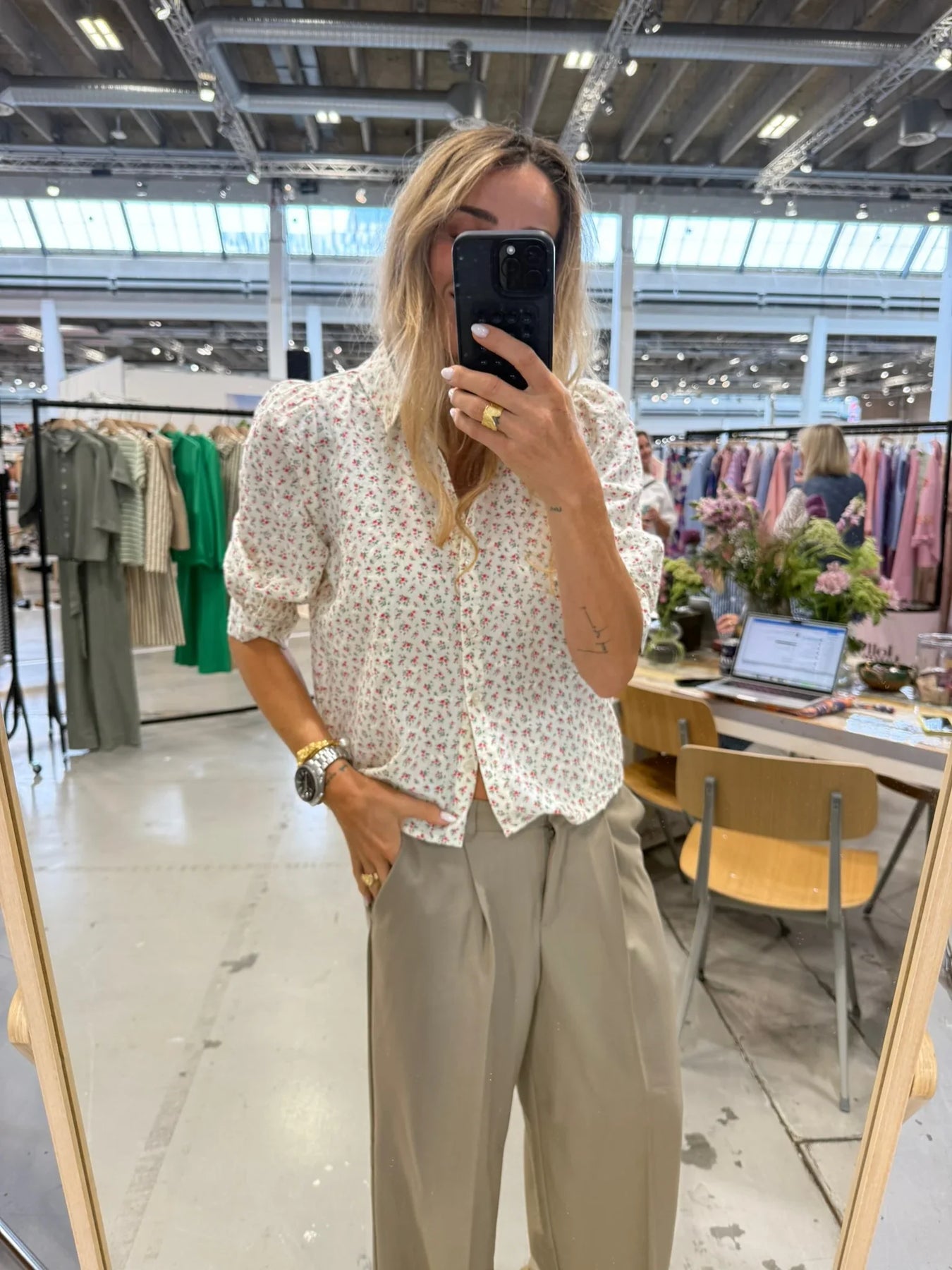 Bono skjorten fra Lollys Laundry er en feminin skjorte. Det fine blomsterprint i små røde og grønne nuancer på en råhvid bund giver skjorten et blødt og feminint look, der passer perfekt til både hverdag og mere klædte anledninger.