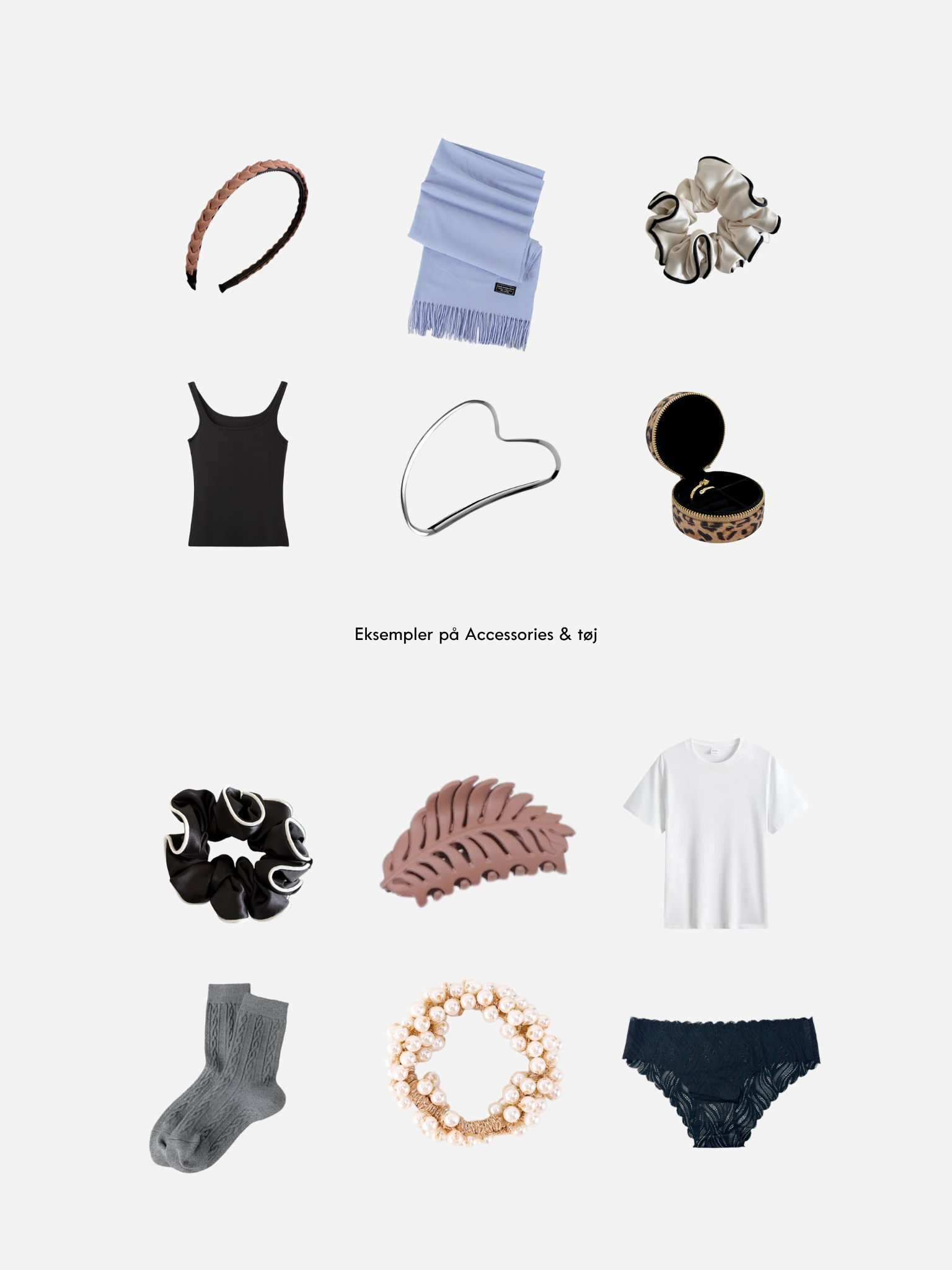 Vi pakker smykker, accessories, hårpynt og tøj, som du kan mixe og matche med din garderobe.