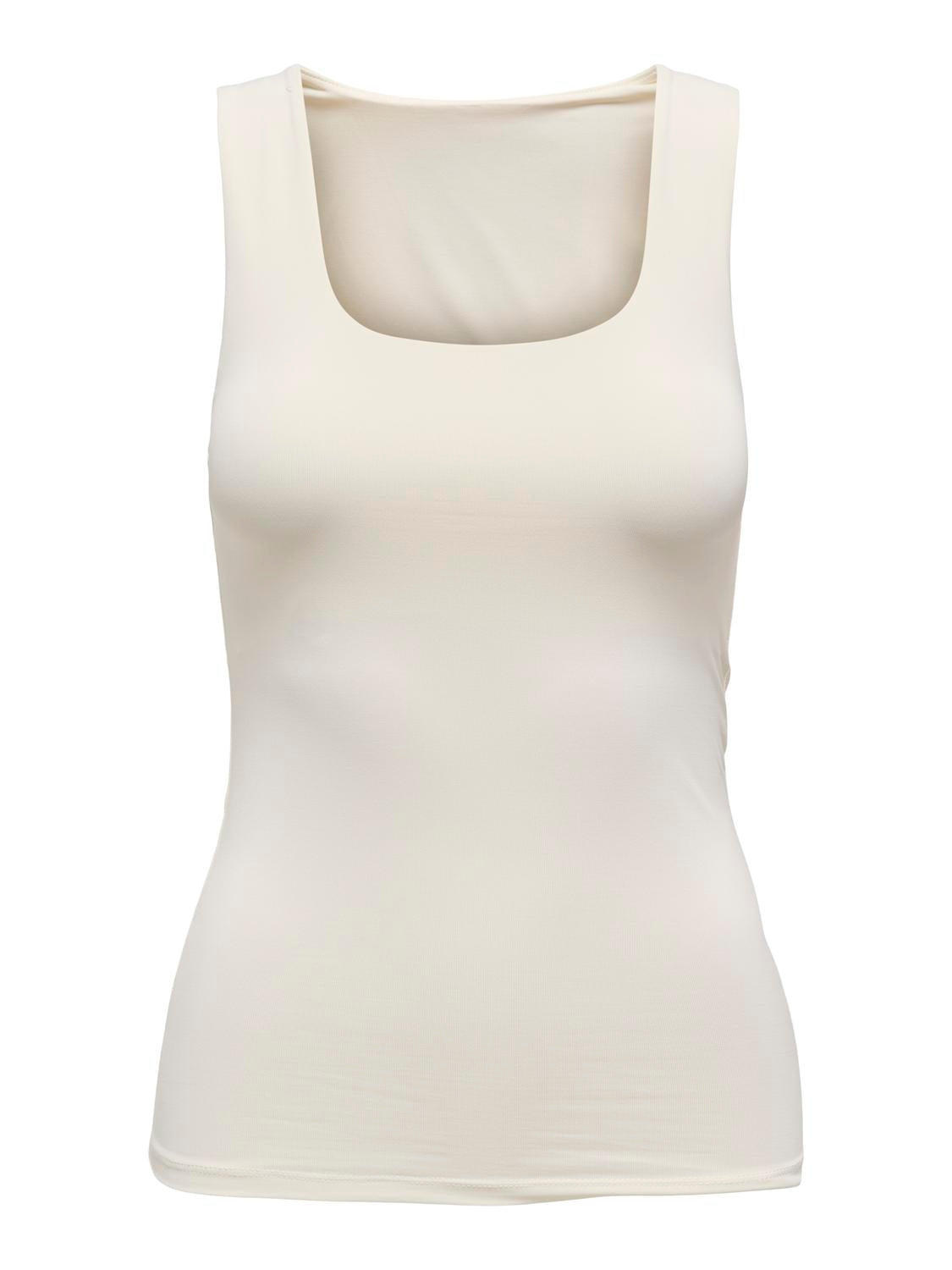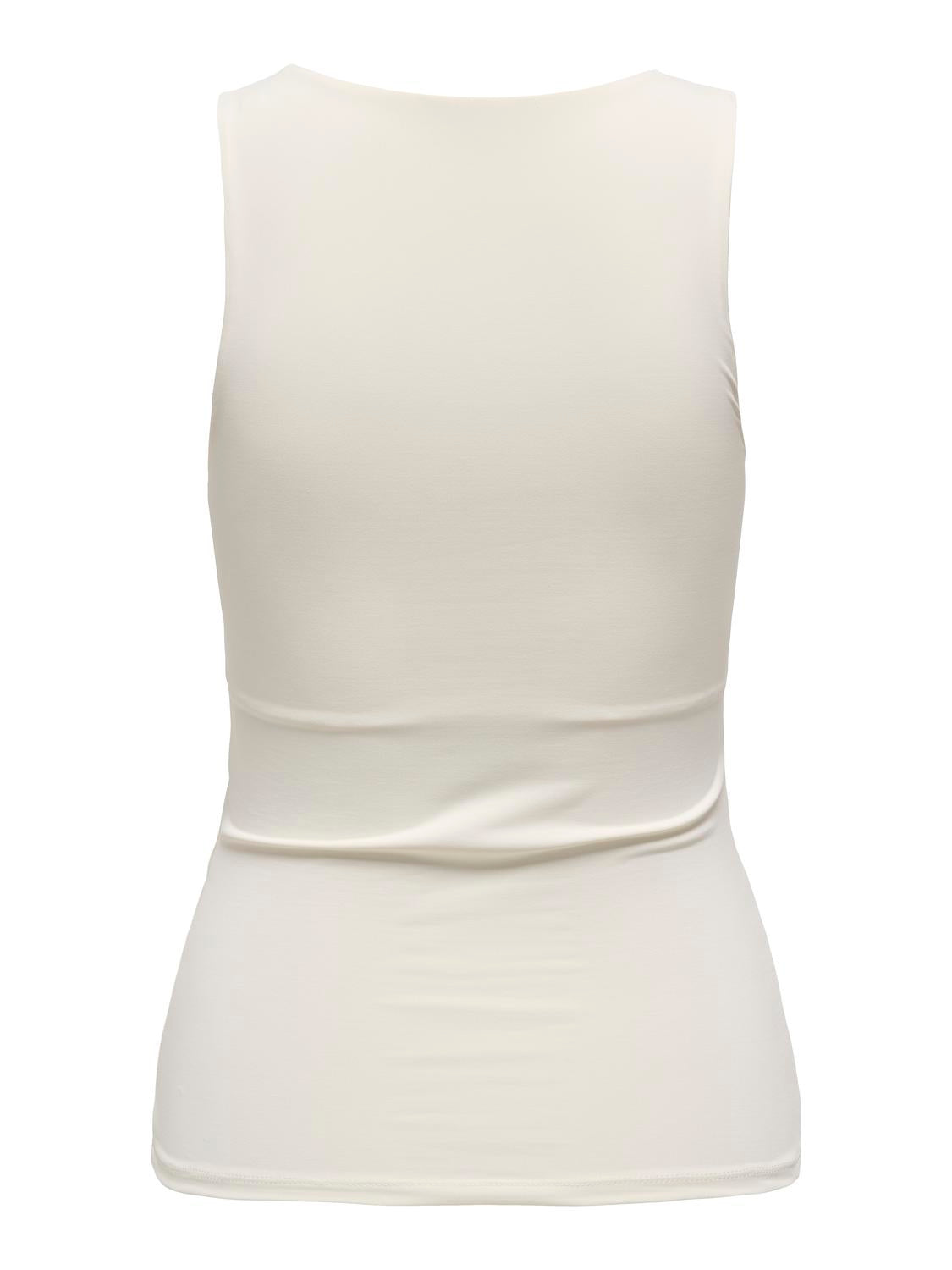 Only's Ea Two Way Strop Top i råhvid er en smart løsning til din garderobe. Denne alsidige top giver dig mulighed for at skifte mellem to forskellige stilarter. Du kan vælge en dyb rund halsudskæring eller vende toppen, så halsudskæringen sidder oppe ved halsen. Det gør den perfekt til forskellige anledninger og humør. Den bløde og smidige pasform sikrer, at du føler dig komfortabel hele dagen.