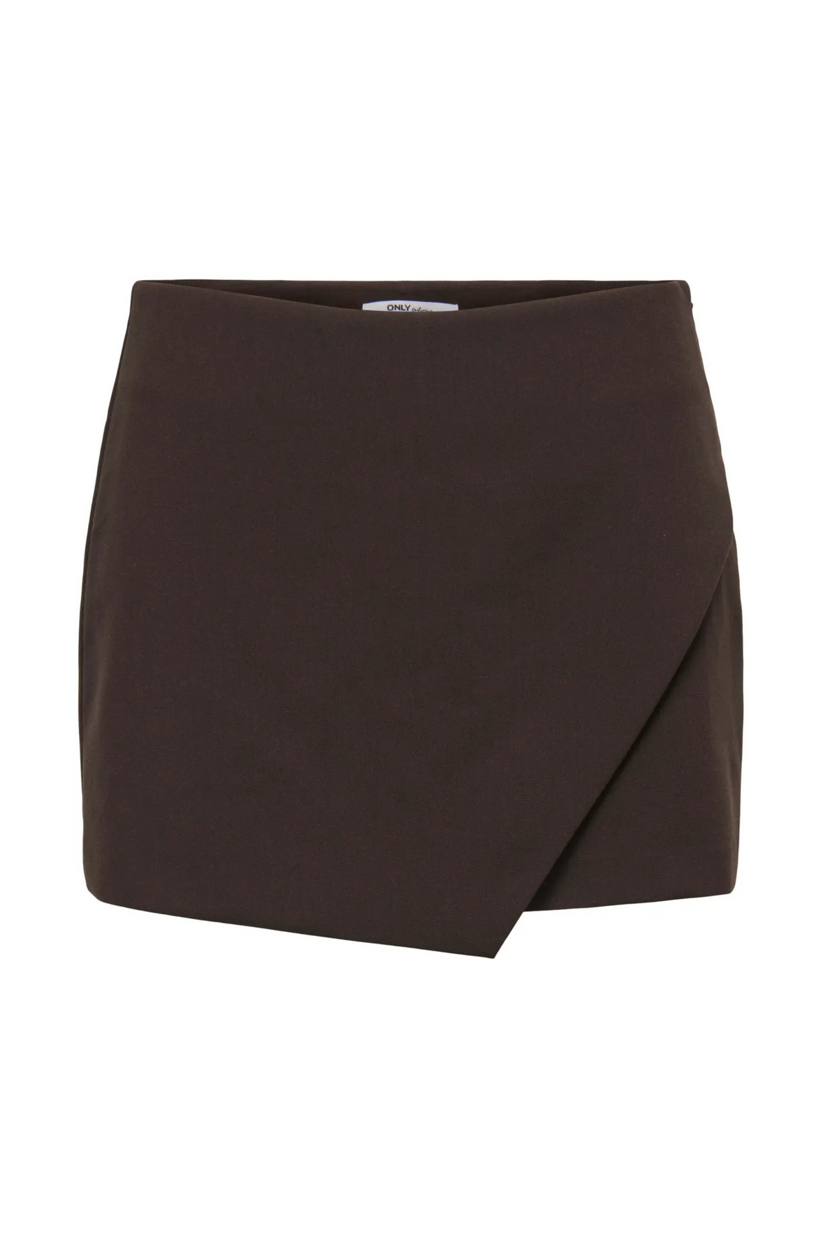 Denne nederdel fra Only kombinerer komfort og stil med wrap detalje, der sidder behageligt i taljen. Den har en mørk chokoladetone, der passer perfekt til efterårets mode. Materialerne består af genanvendt polyester, viscose og elastan, som giver en blød og let strækbar kvalitet, der følger kroppens bevægelser. Denne korte nederdele kan kombineres med en varm strik og støvler i det mere casuelle look eller med en top og stilletter til outfittet i byen.