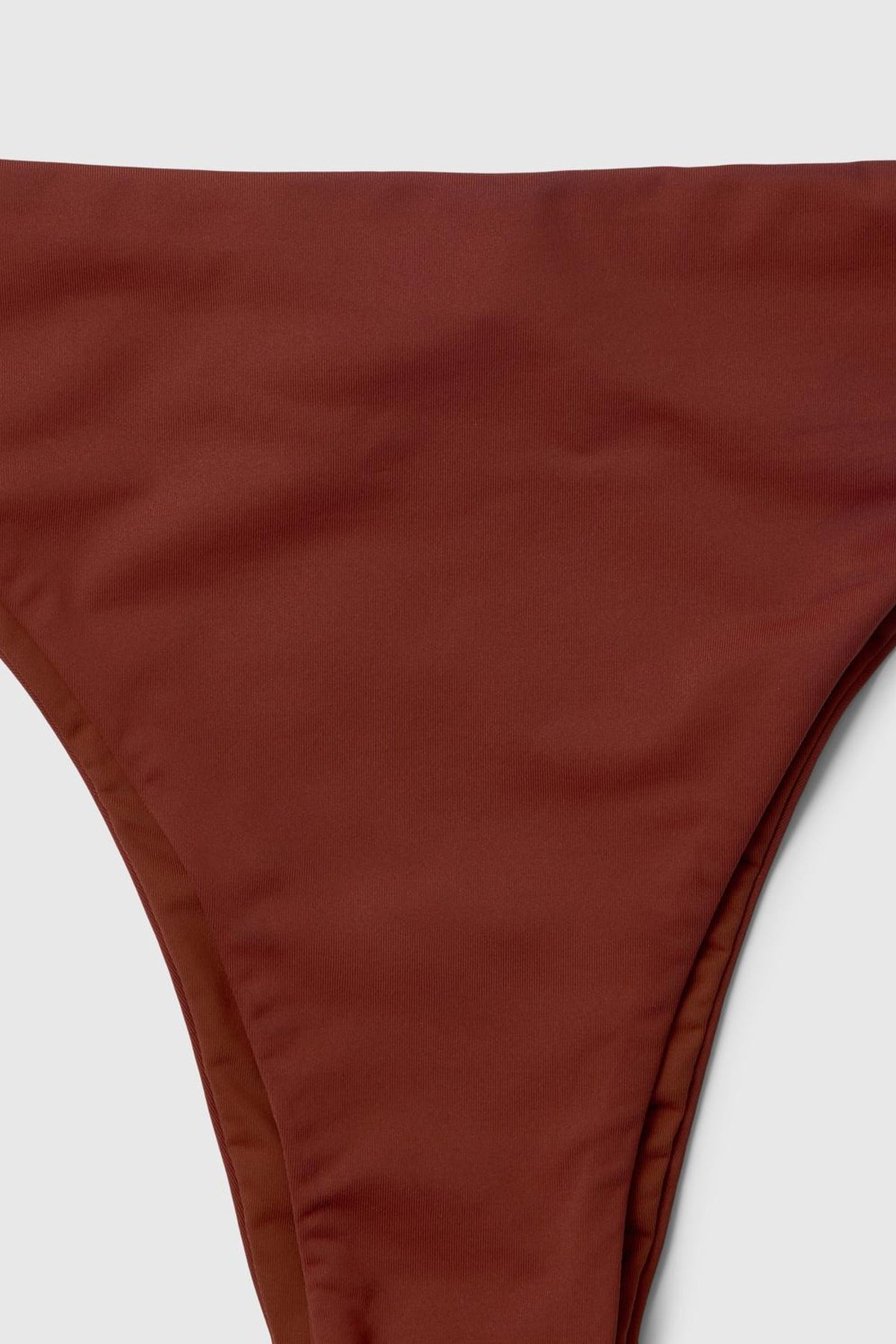 En klassisk cheeky bikiniunderdel i en dyb kirsebærbrun nuance, designet til en komfortabel midjeplacering og et flatterende snit. Stoffet føles blødt og smidigt mod huden og er lavet med fokus på mere bæredygtige materialer uden at gå på kompromis med pasformen.