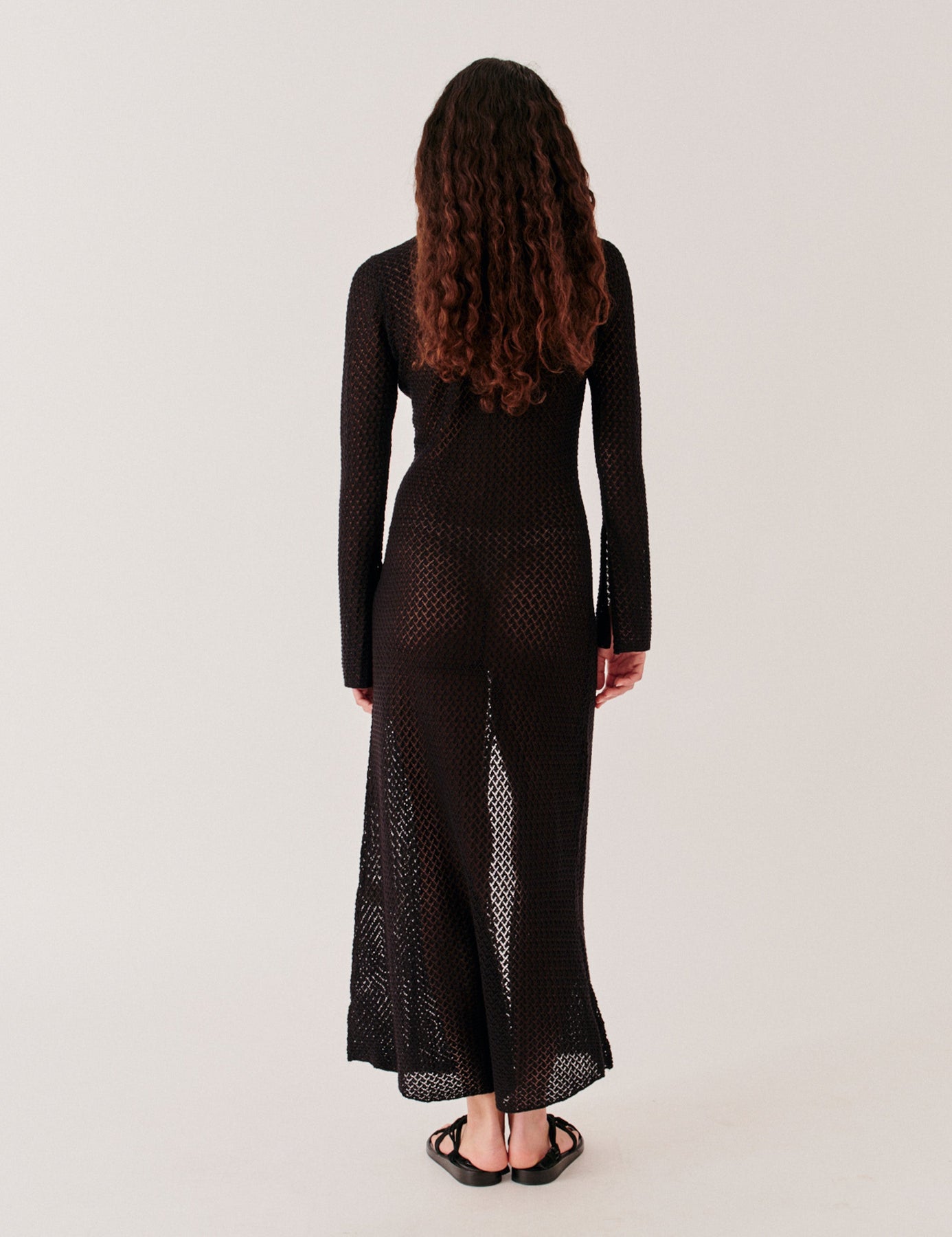 Lang kjole med gennembrudt mønster