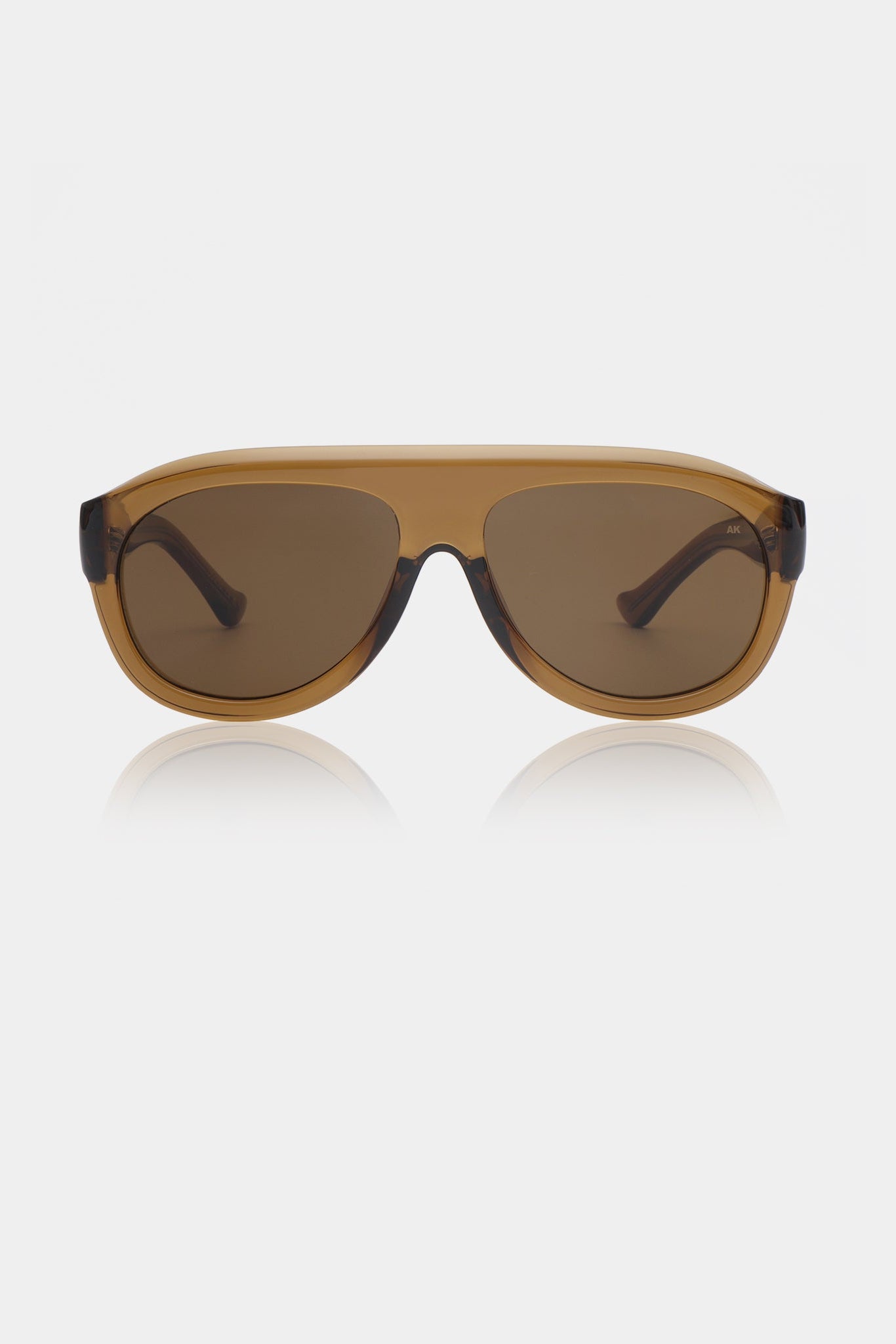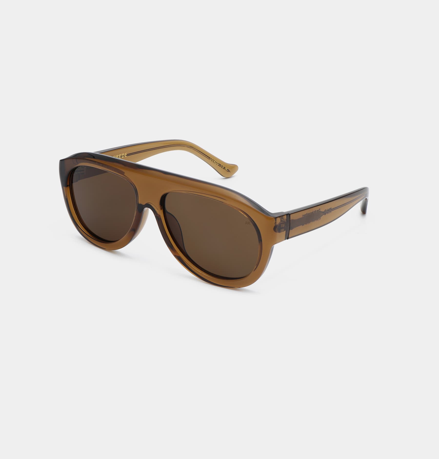 De bløde, afrundede linjer balancerer det kraftfulde frontdesign og giver et moderne take på den ikoniske aviator-silhuet. Et par Solbriller fra A. Kjærbede, der forener komfort, karakter og stil.