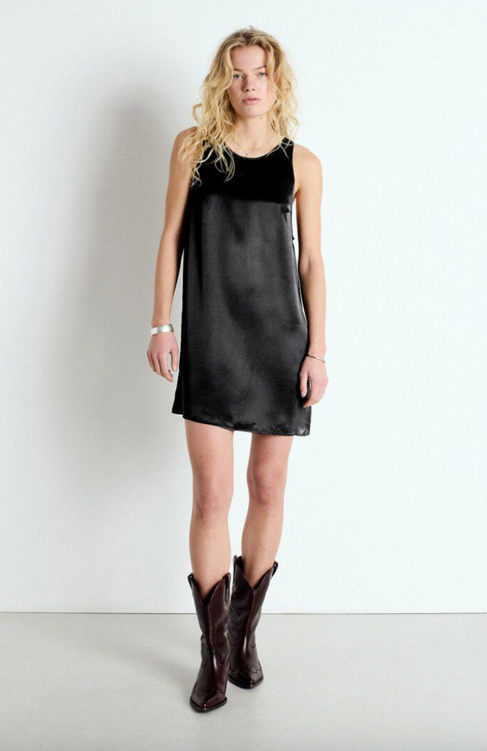 Unyl-kjolen fra American Vintage udstråler moderne femininitet med sit lige, korte snit og elegante glacé-finish. Fremstillet i 100 % viskose, som giver en flydende og let struktur med smuk glans.