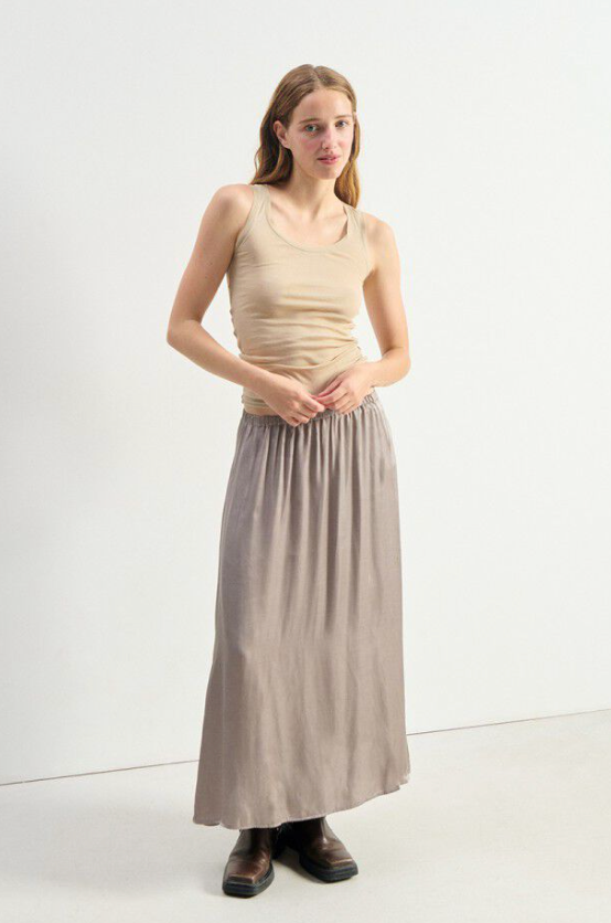 En blød og alsidig tanktop fra American Vintage fremstillet i 100 % Supima bomuld. Den har bred strop, rund halsudskæring og en let figursyet pasform, der gør den ideel både alene og under skjorter eller strik.