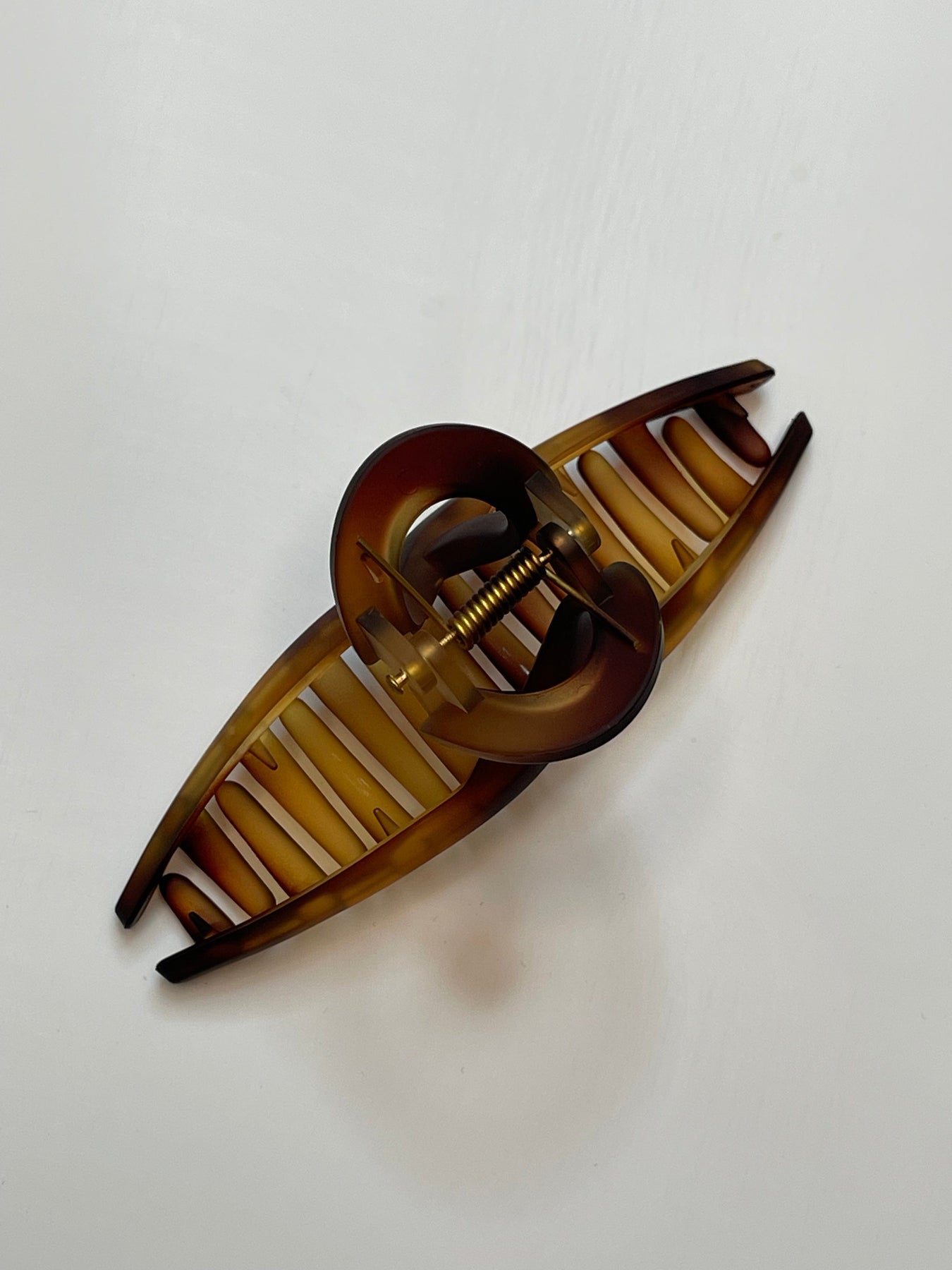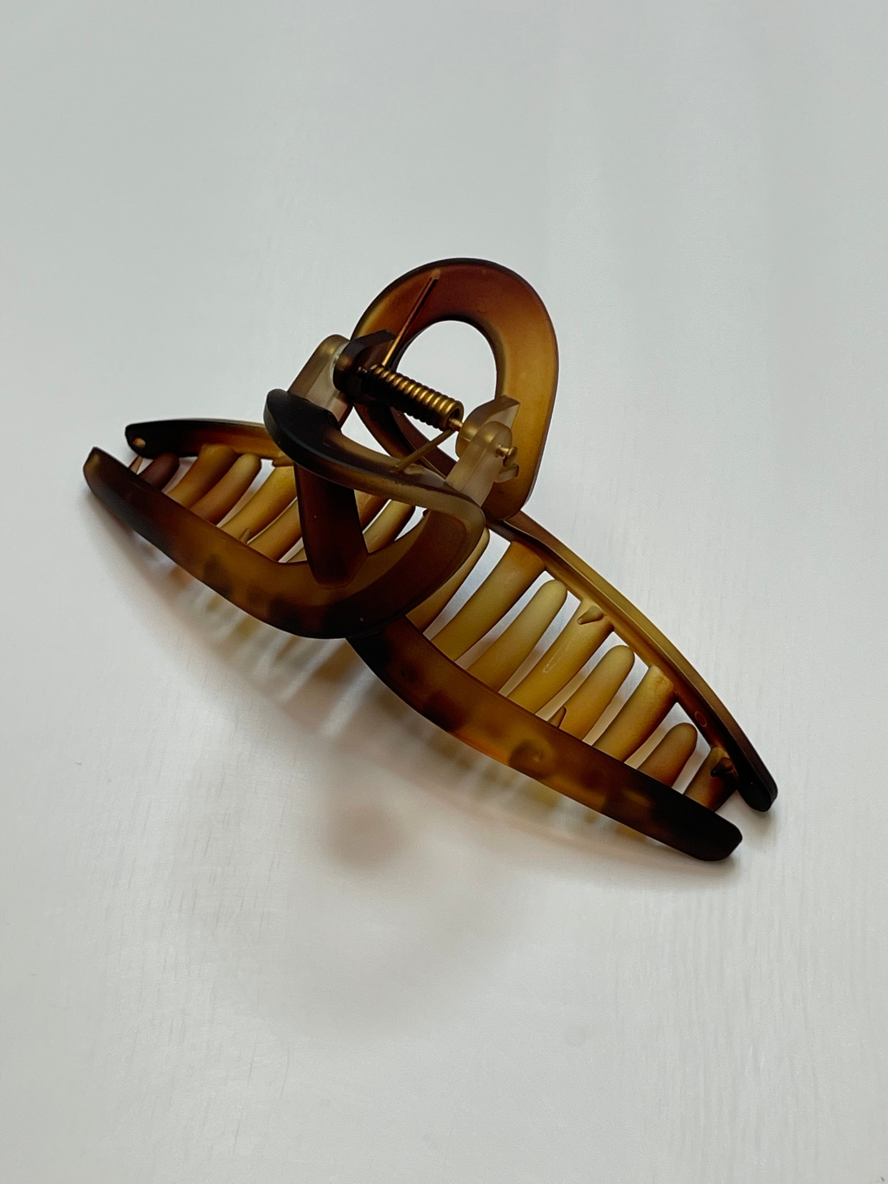 Brenda hårspænde i havana brun med tortoiseshell-effekt holder dit hår på plads gennem dagen. De mange tænder giver et jævnt fordelt greb, mens fjederen sikrer nem fastgørelse.