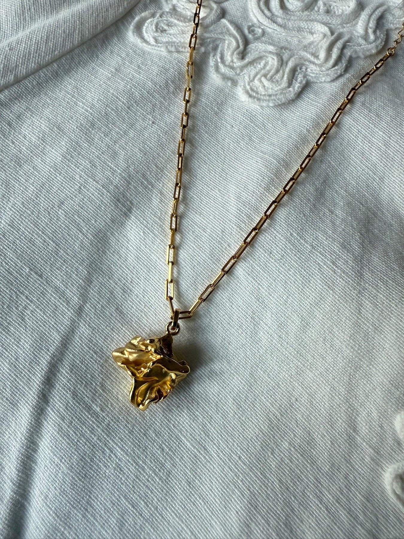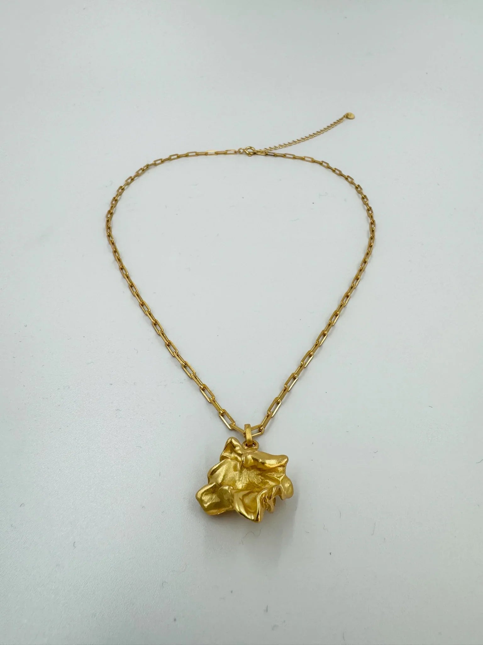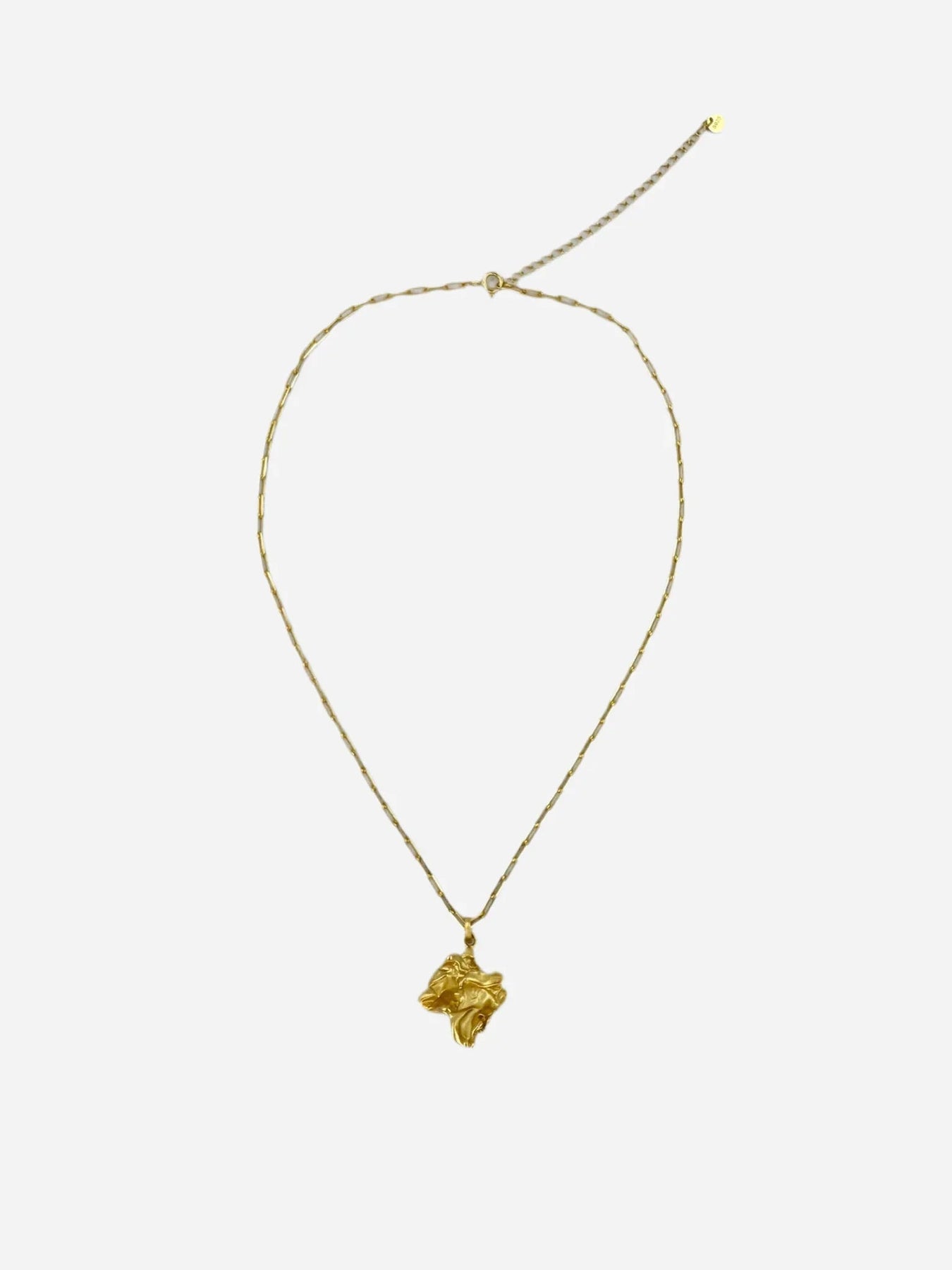 Andcopenhagen Arlinda halskæden har et særpræget vedhæng i organisk form. Kæden er 14,5 cm lang med 3,5 cm forlængelse, og vedhænget måler 2 cm. De flade led giver et moderne udtryk.