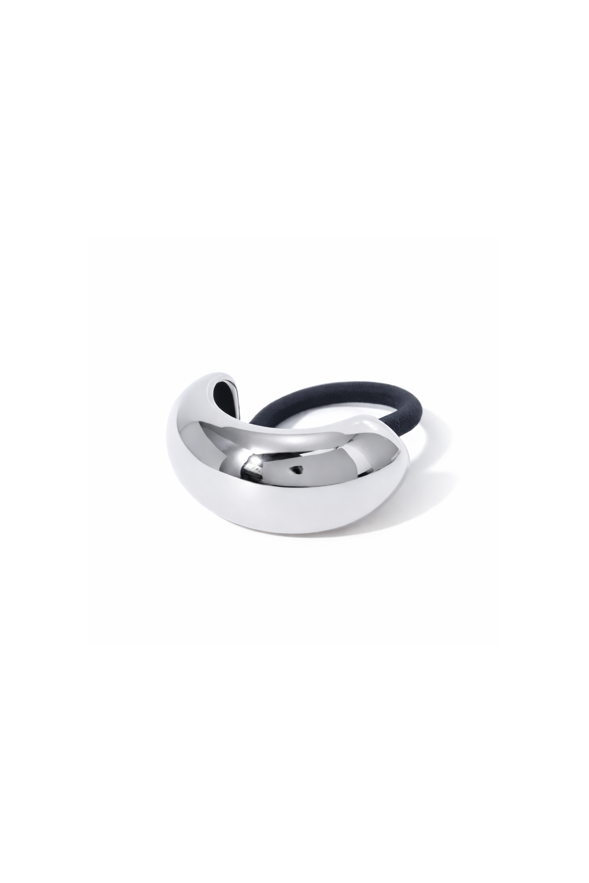 Eksklusiv hårelastik med blankpoleret sølvfarvet metalcover i et blødt, afrundet design. Den elegante finish giver et stilrent og moderne udtryk, som løfter både en enkel hestehale og mere festlige frisurer.