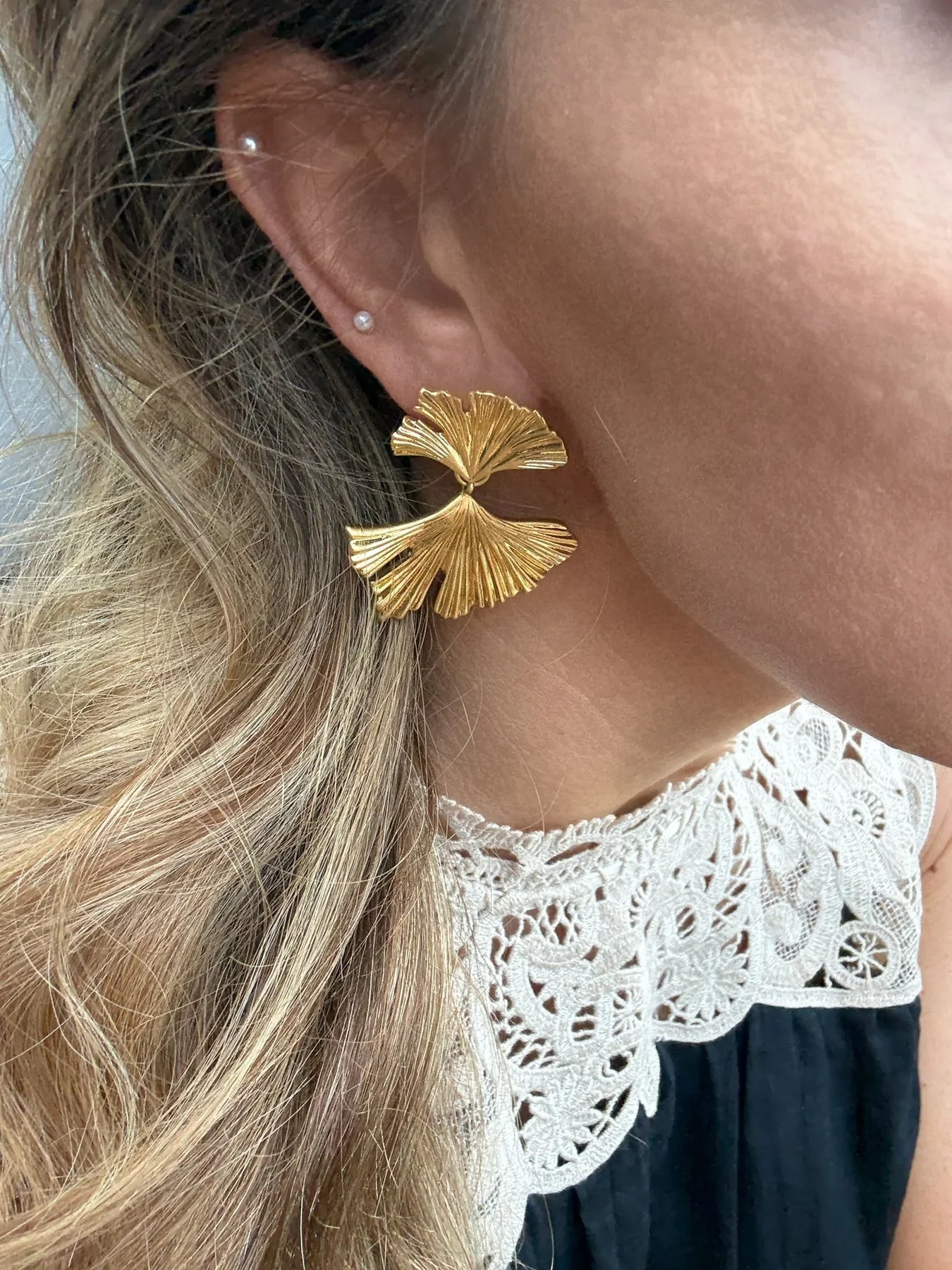 Leaf-shaped earrings with golden finish