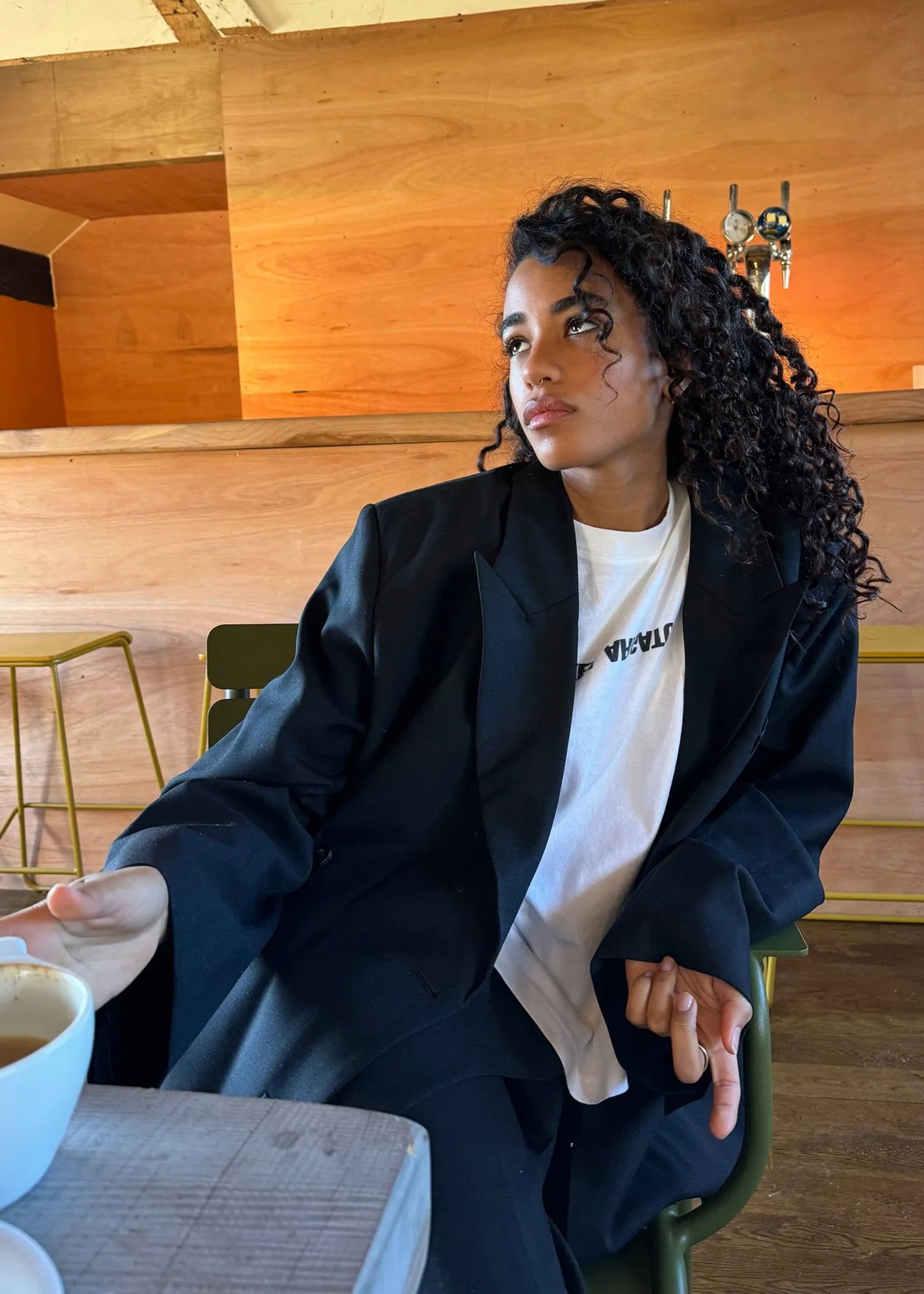 Distort T-shirten har diskrete, spejlvendte branddetaljer placeret på brystet. Den er fremstillet i økologisk bomuld og designet i en oversized pasform med rund hals.