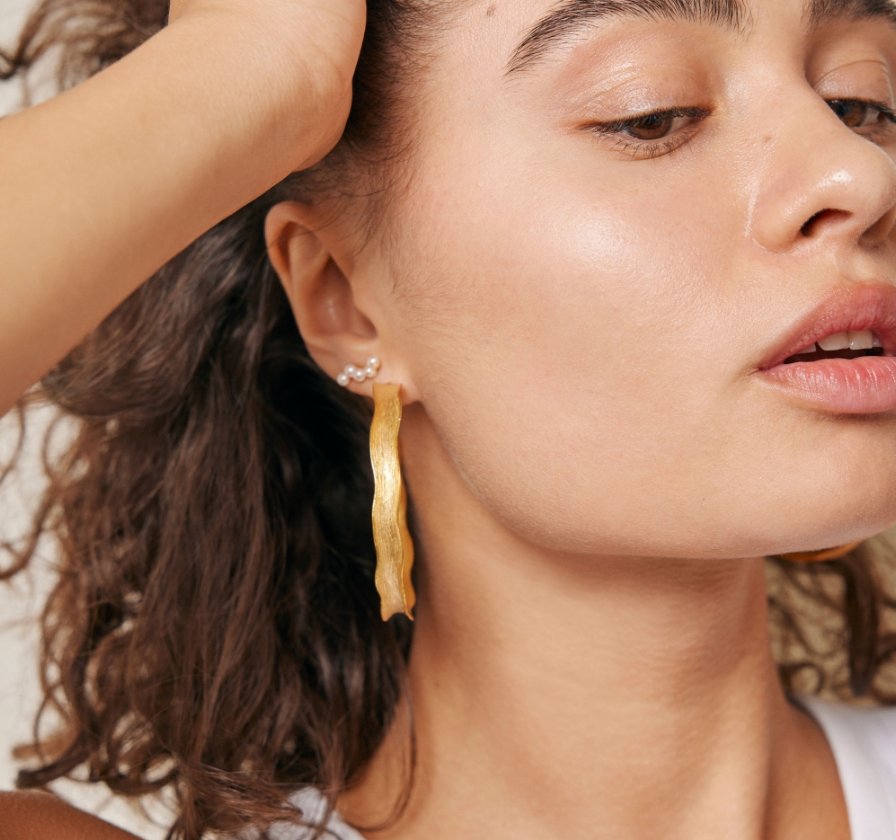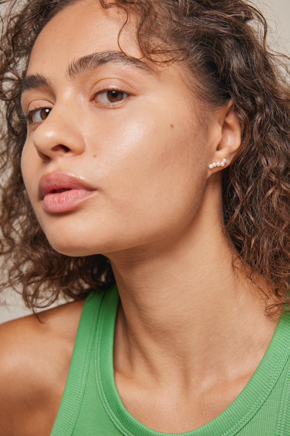 Evie perleørestik er en elegant og tidløs ørering, designet som en fin række små perler, der smyger sig smukt langs øret. Den delikate form giver et feminint og harmonisk udtryk, uanset hvordan du vælger at placere den. Evie passer perfekt til både hverdag og fest og kan bæres alene for et klassisk look – eller kombineres med andre perleøreringe og guldbelagte smykker for et mere personligt og moderne udtryk.