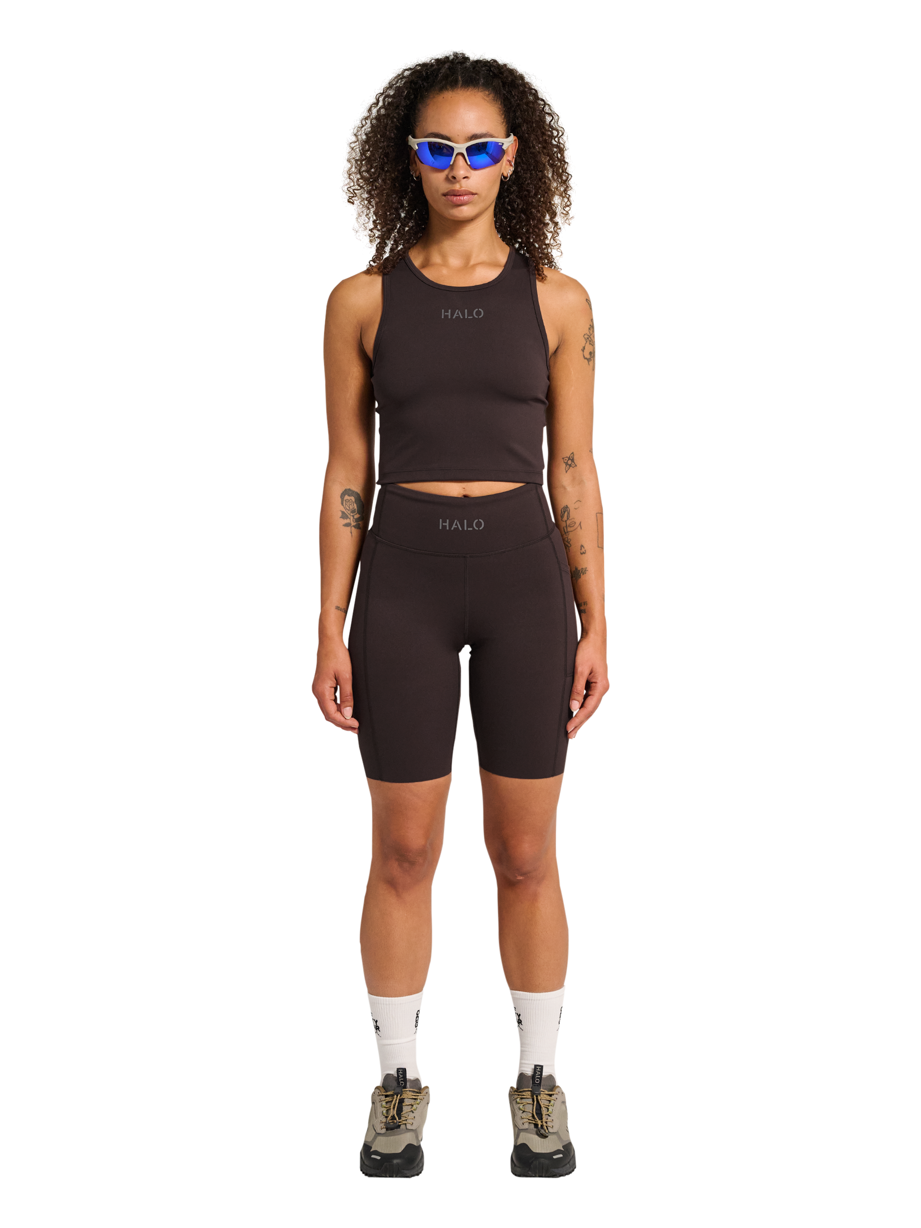 These Halo women's training shorts are designed to provide high comfort and freedom of movement during intense training. The soft and elastic material ensures a tight fit that follows the body's movements without hindering them. The Chocolate Torte color gives a stylish and natural look that can be easily combined with other training clothes.