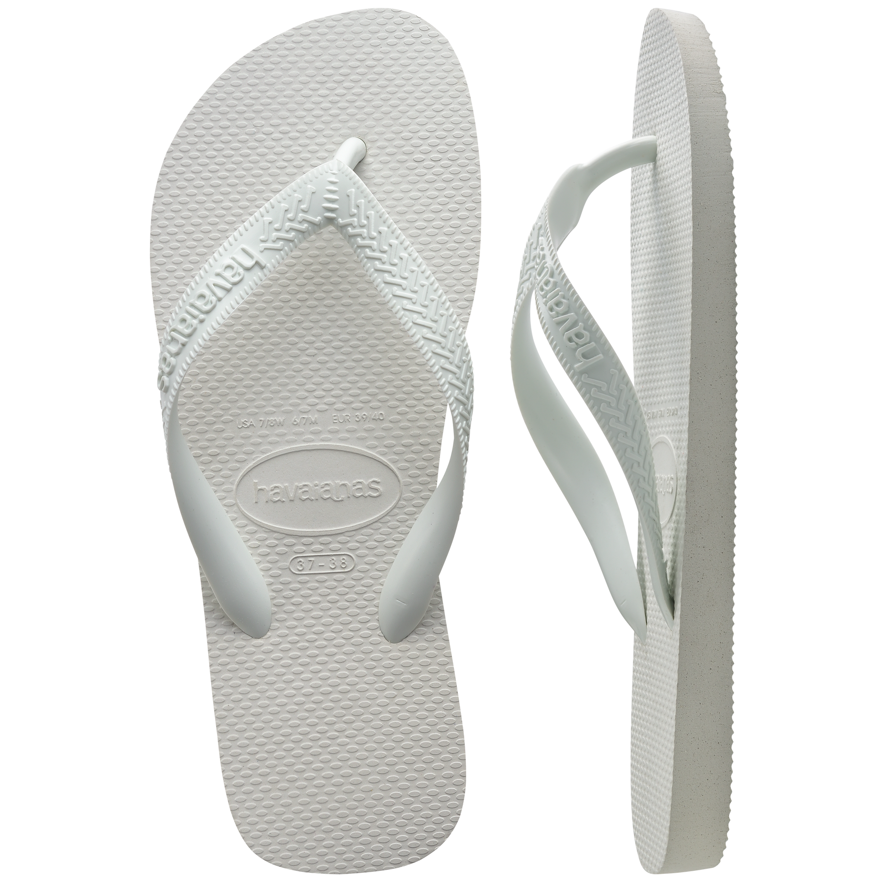 Disse Havaianas Top Senses klipklapper i klassisk hvid har et rent og minimalistisk udtryk, der passer til enhver sommergarderobe. Den enkle farve gør dem nemme at style med alt fra strandtøj til lette hverdagslooks.