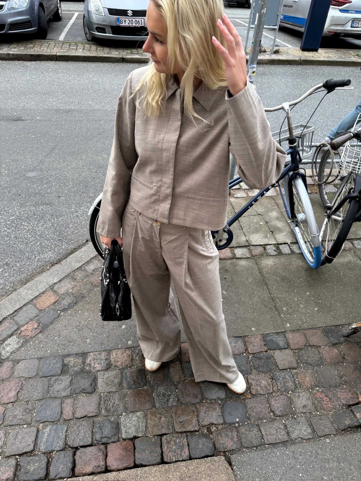 - Materialer: 85% polyester, 14% viskose, 1% elastan