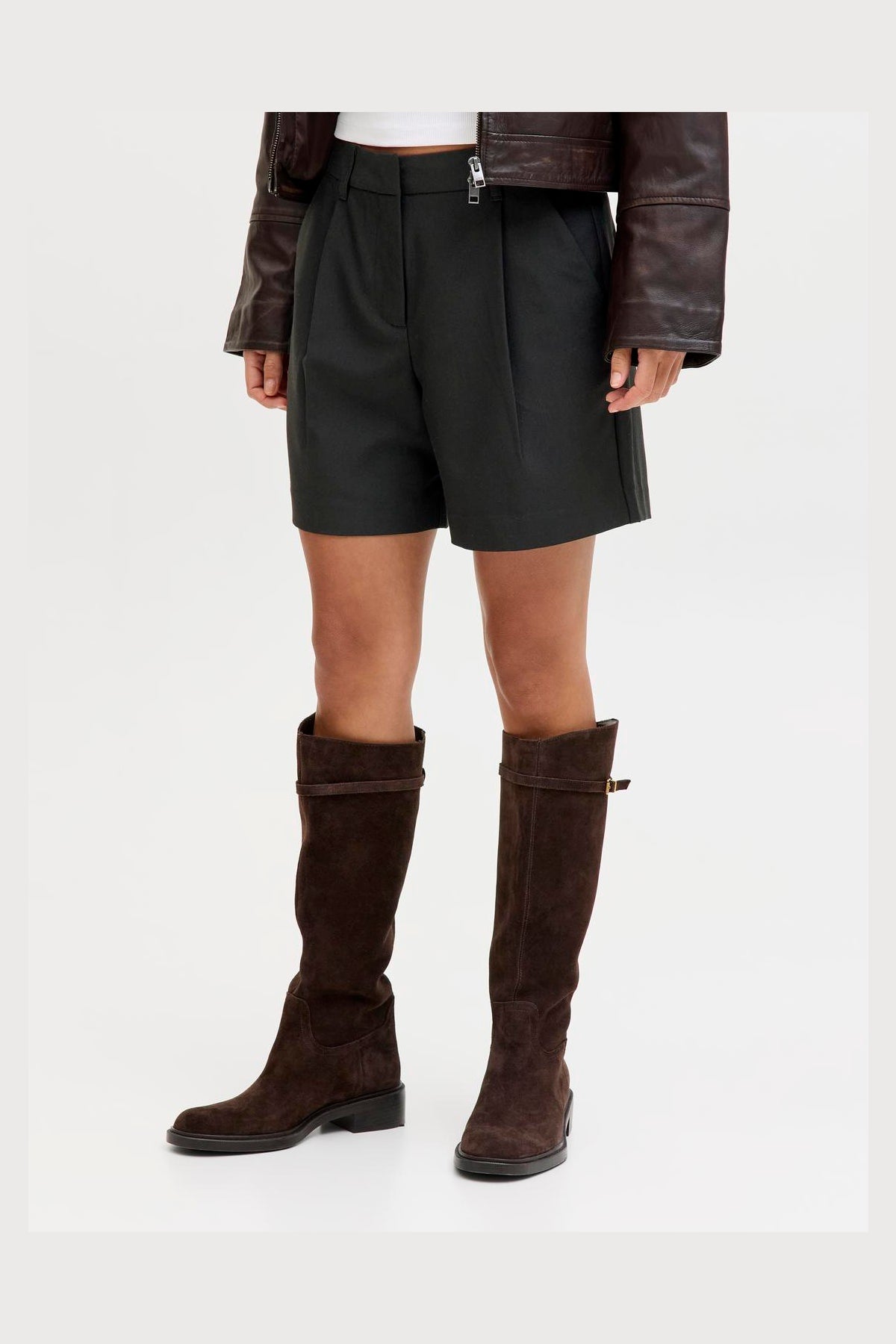 Disse wide-leg shorts har en høj talje og er lavet i et vævet stof, der giver en holdbar og stærk kvalitet uden stræk. Shortsene er designet som en smart-casual erstatning for denimshorts, ideelle til varmere vejr. Modellen her er fra JJXX og har frontlommer og en afslappet pasform, der kombinerer komfort med stil.
