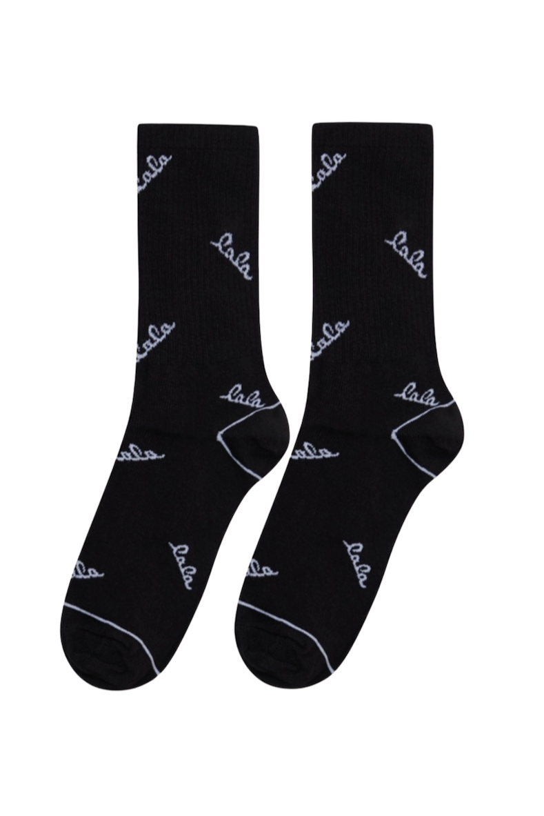LALA BERLIN - Socks - Pink/White - Sam Cotton Blend comes in a combination of white and pink. The white base contrasts with the pink details, including two stripes placed above and below the logo. A design element is the embroidered LALA brand name near the top. Along the side of the foot, a pink text runs, adding visual interest to the design. These socks are not only stylish, but also practical, as they are waterproof, making them ideal for use in various weather conditions.