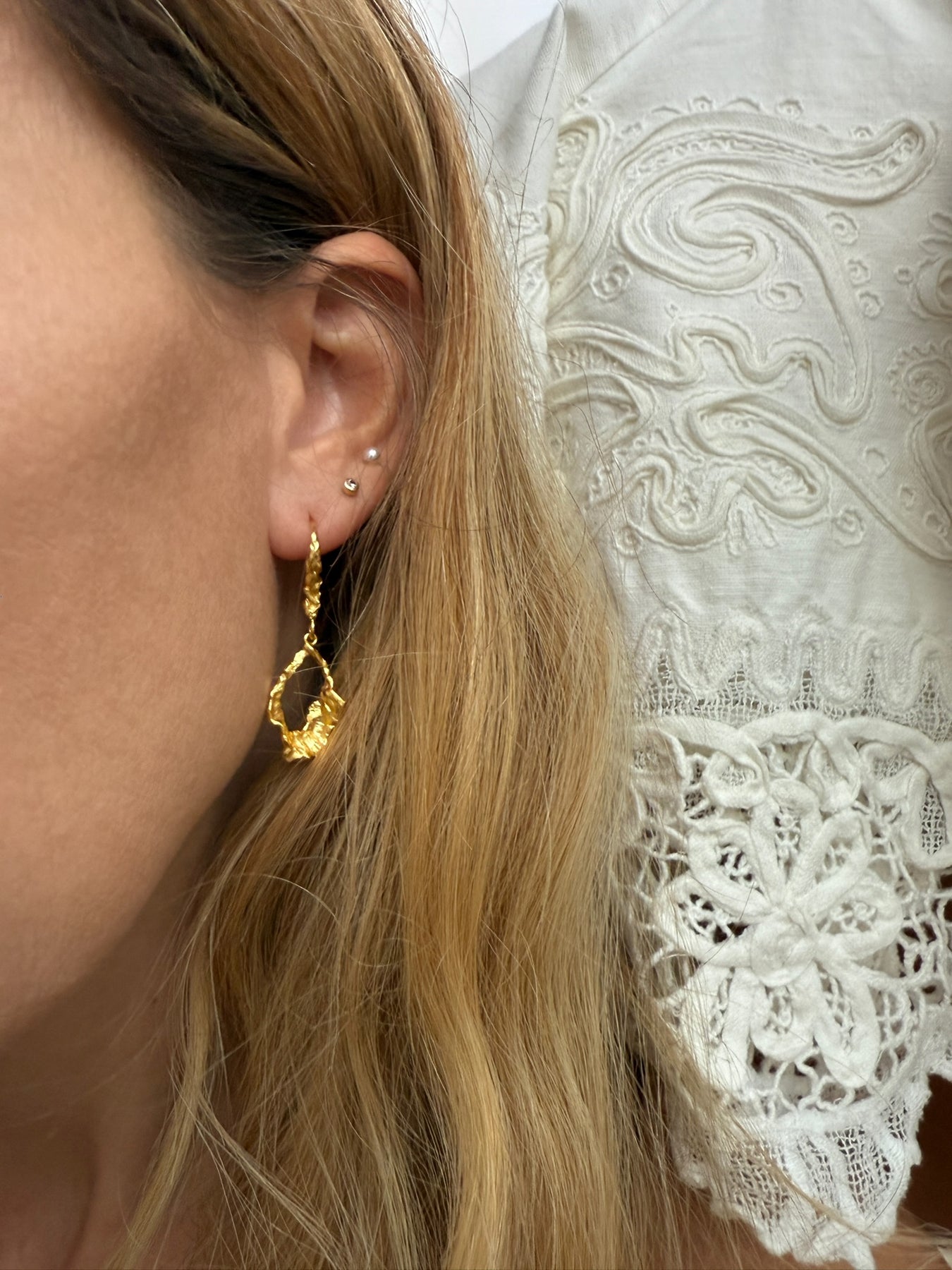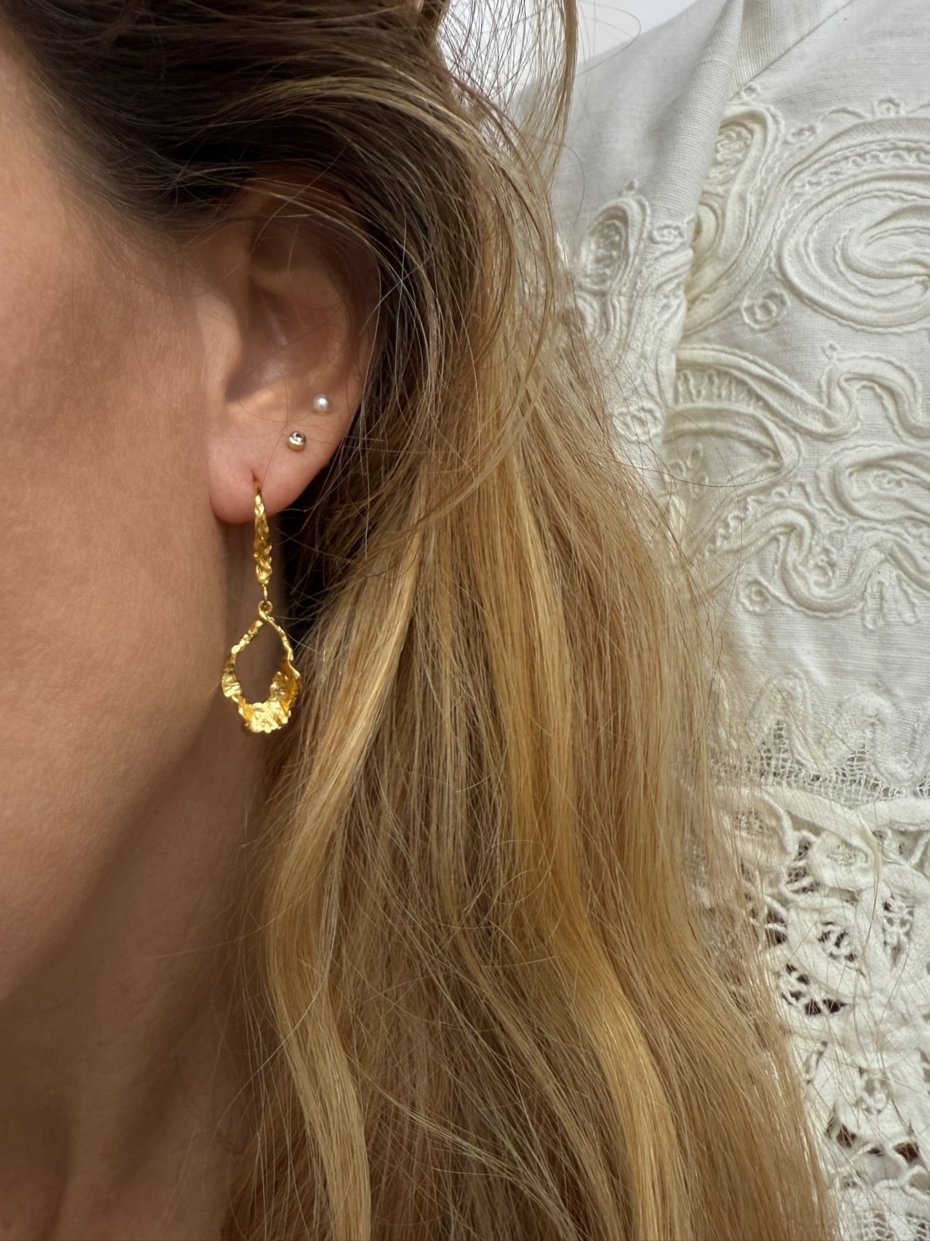 Øreringe med organisk, struktureret design i 18 karat guldbelagt sølv.