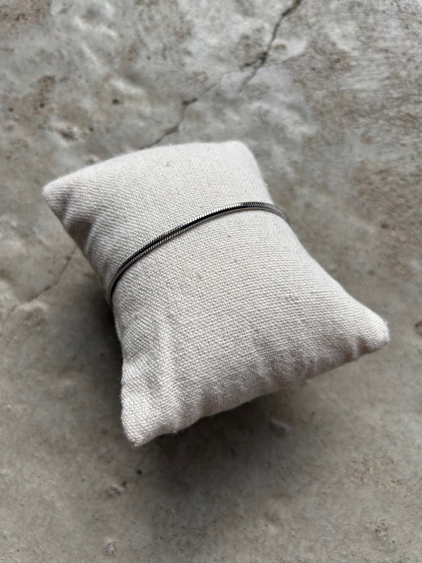 Fint og elegant armbånd Fra NINE Jewelry med et stilrent snake chain-design og en glat, fleksibel overflade, der giver et elegant og tidløst udtryk. Lukkes med en karabinlås og har en forlængerkæde for justerbar pasform.