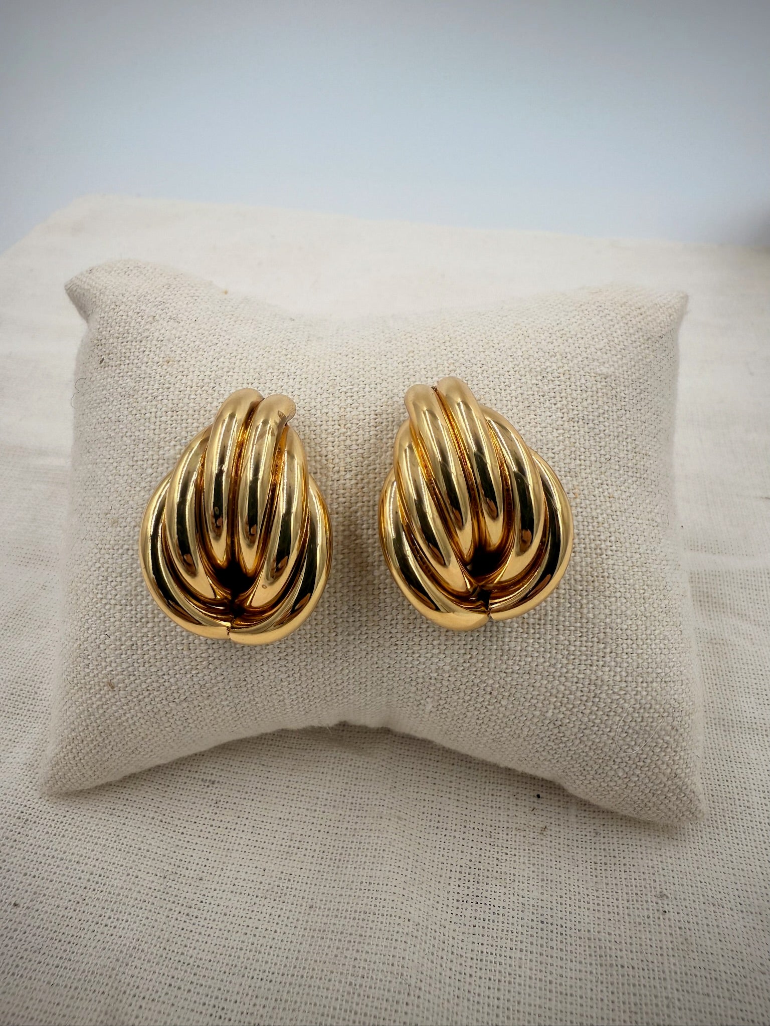 Disse snoede øreringe fra NINE har 18 karat guldbelægning og er 100 % nikkelfri. Det skulpturelle design tilføjer et moderne touch til dit look. Du modtager øreringene som et par.