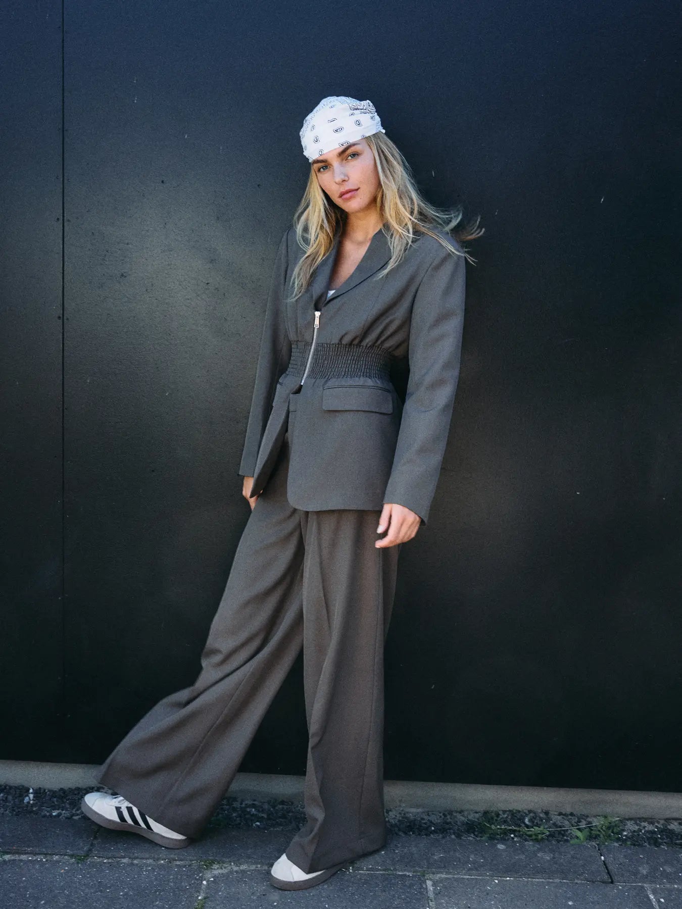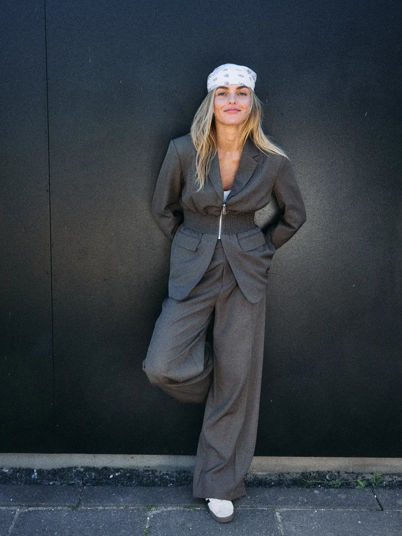 Denne feminine blazer fra Noisy May har reverse krave og lukkes med en moderne lynlås, som giver et stilrent udtryk. De praktiske frontlommer og Regular Fit pasformen sikrer både funktionalitet og komfort, mens den markerede talje skaber en flatterende silhuet. Blazeren er fremstillet i vævet plain weave kvalitet af 97% polyester og 3% elastane, hvilket giver en glat overflade med let stretch og god bevægelsesfrihed.