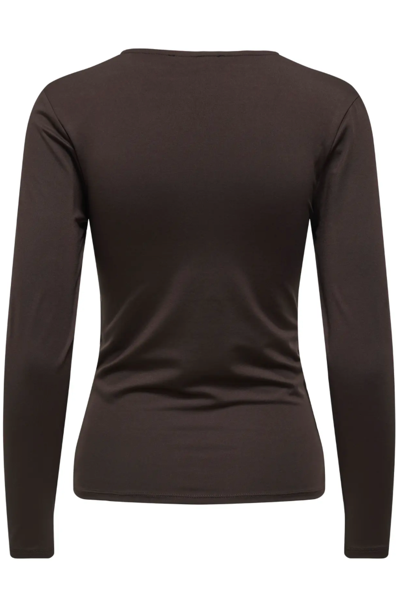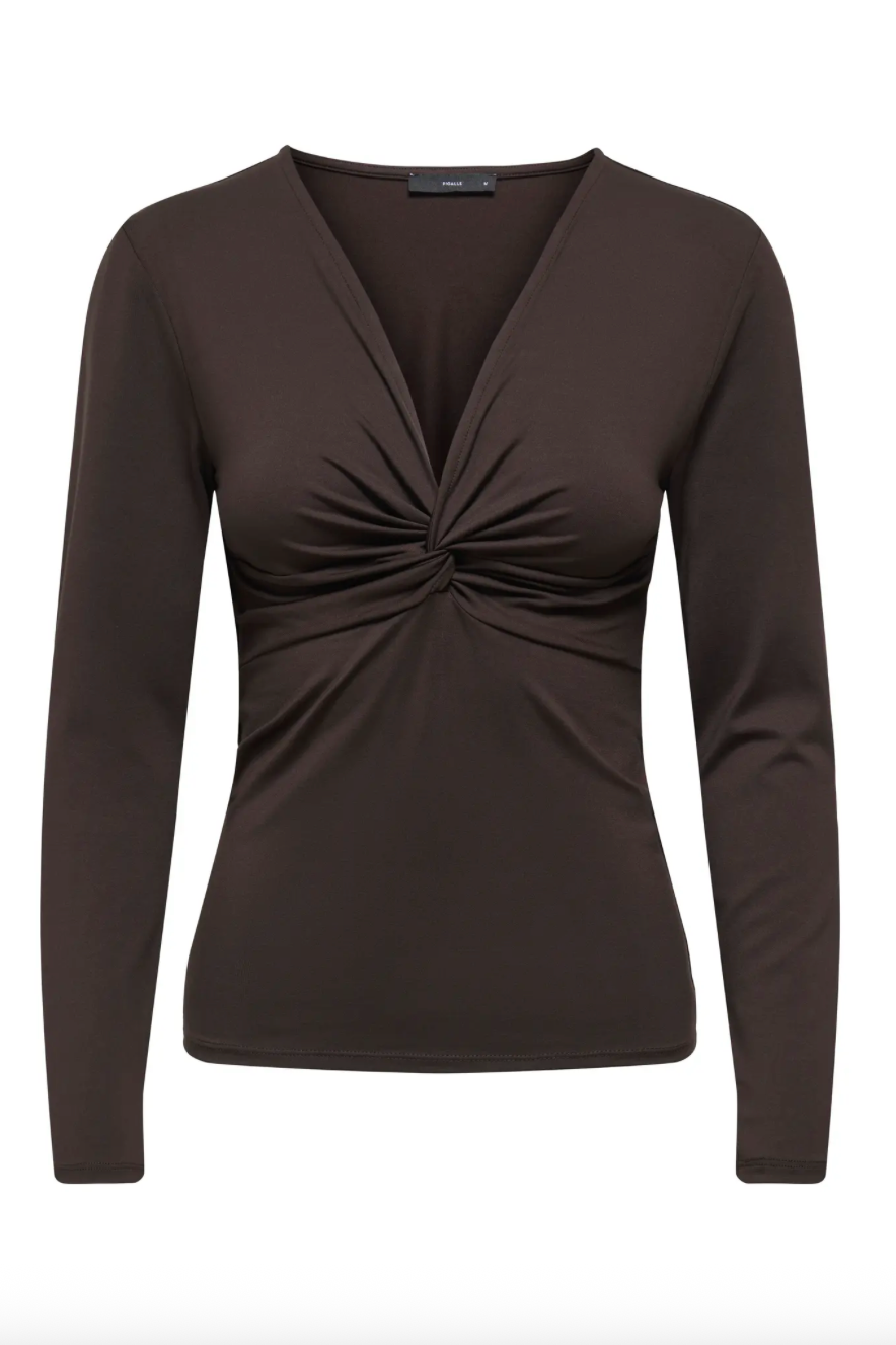 Only Mørkebrun Bluse med V-udskæring og Knot-detalje