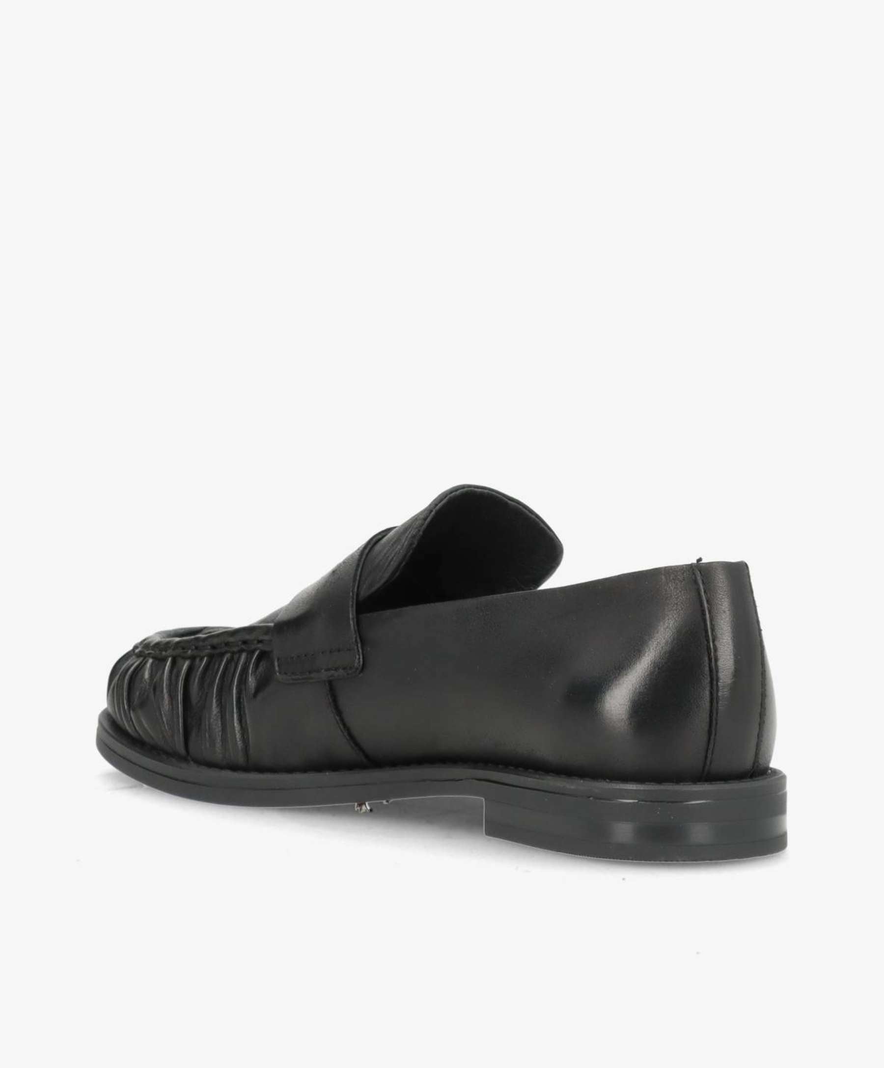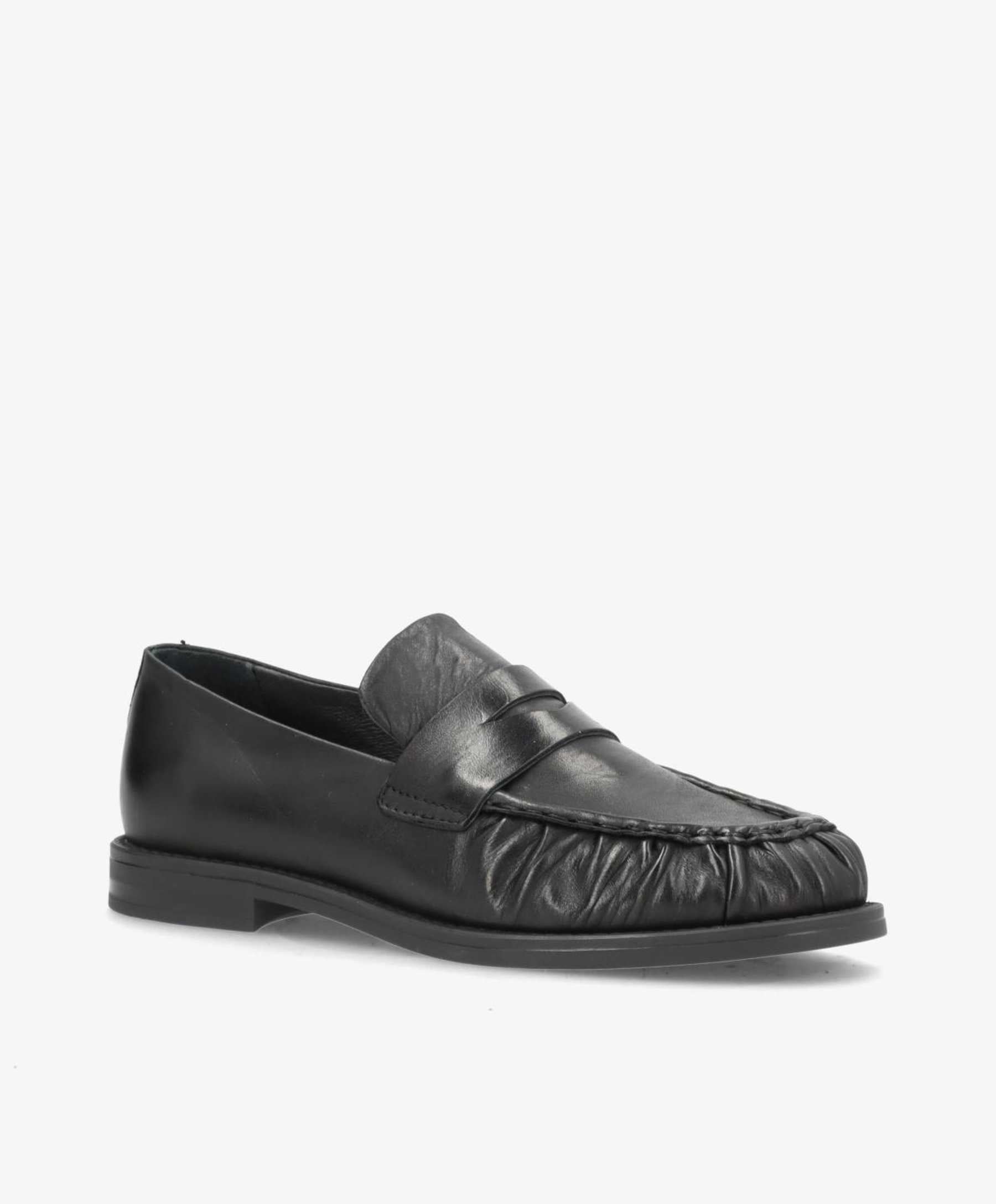 WHISPER loafer i sort læder fra Phenumb Copenhagen er en elegant og tidløs sko, der kombinerer klassisk design med moderne finesse. Den er fremstillet i blødt, glat læder, som giver et eksklusivt udtryk og en behagelig pasform.