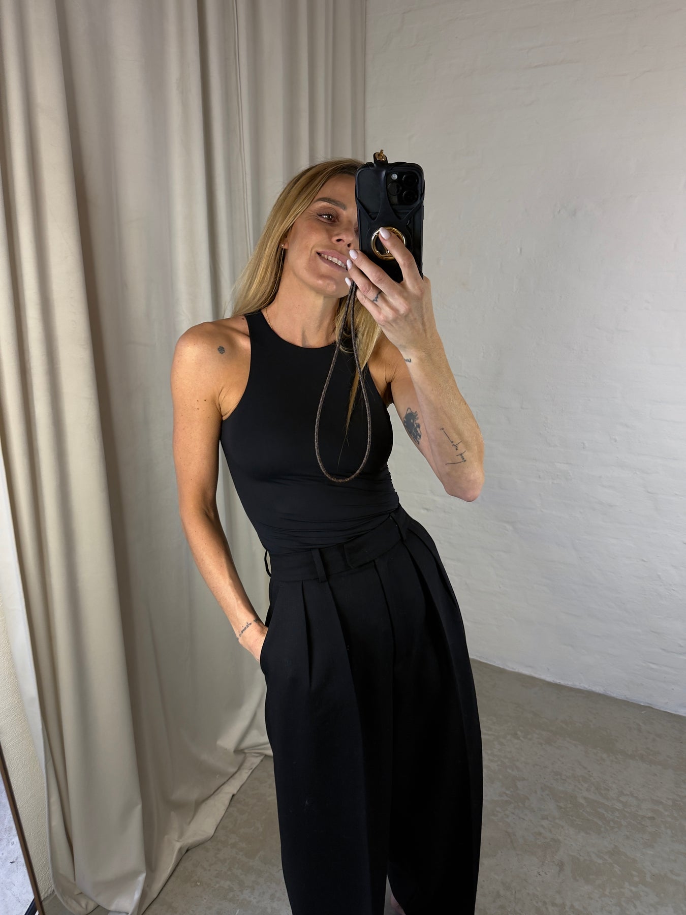 This stylish black bodysuit from Sassy Copenhagen combines a modern design with maximum comfort. The bodysuit has an elegant high-neck cut, which gives a minimalist and exclusive expression, perfect for both everyday and festive looks. The cut is smooth and figure-shaping, and the high-cut leg cut gives a beautiful, elongated visual expression.