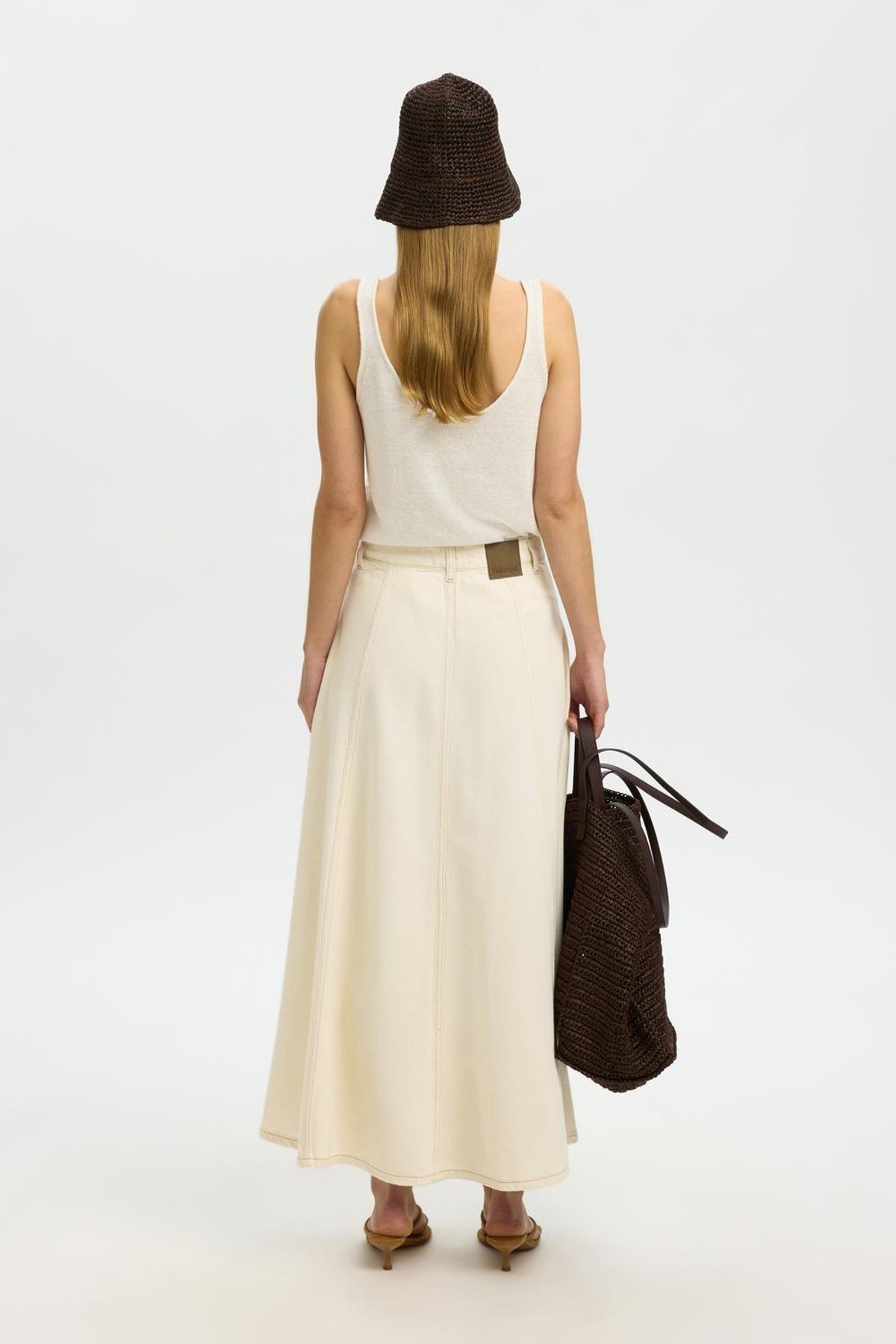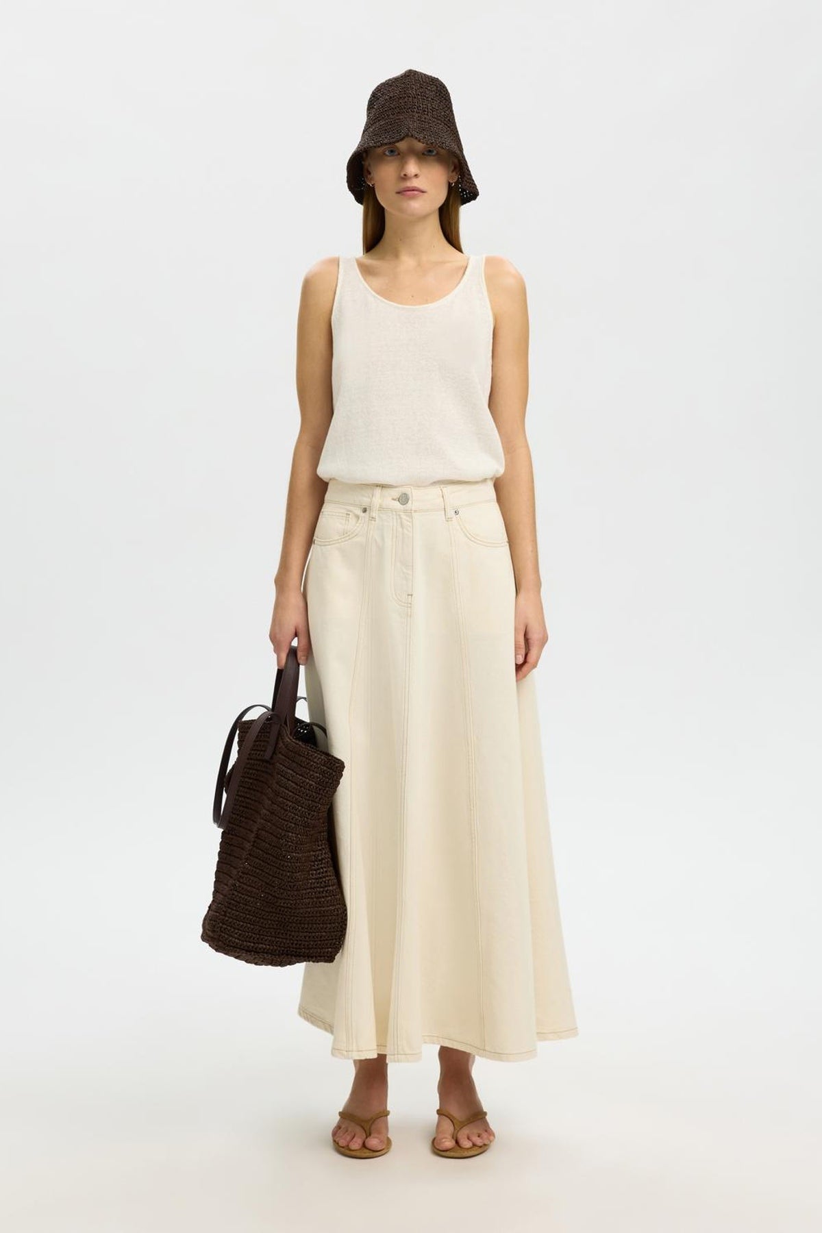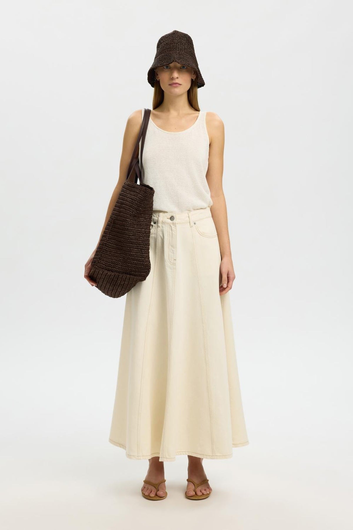Selected Femme - Nederdel - Egret - Slftenna Hw Long Denim Skirt