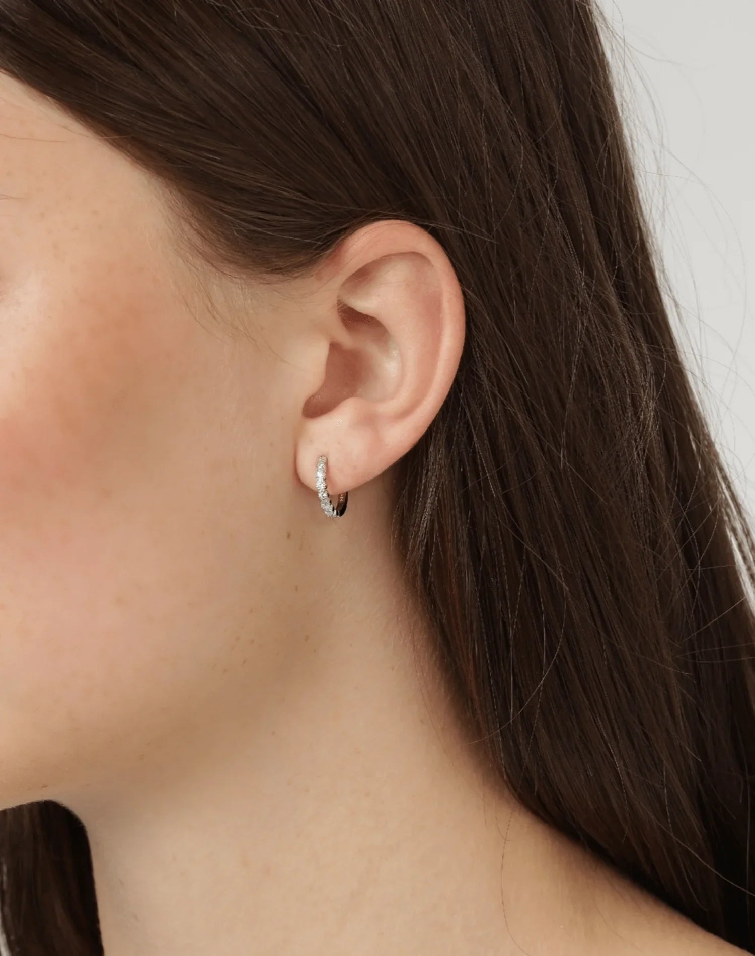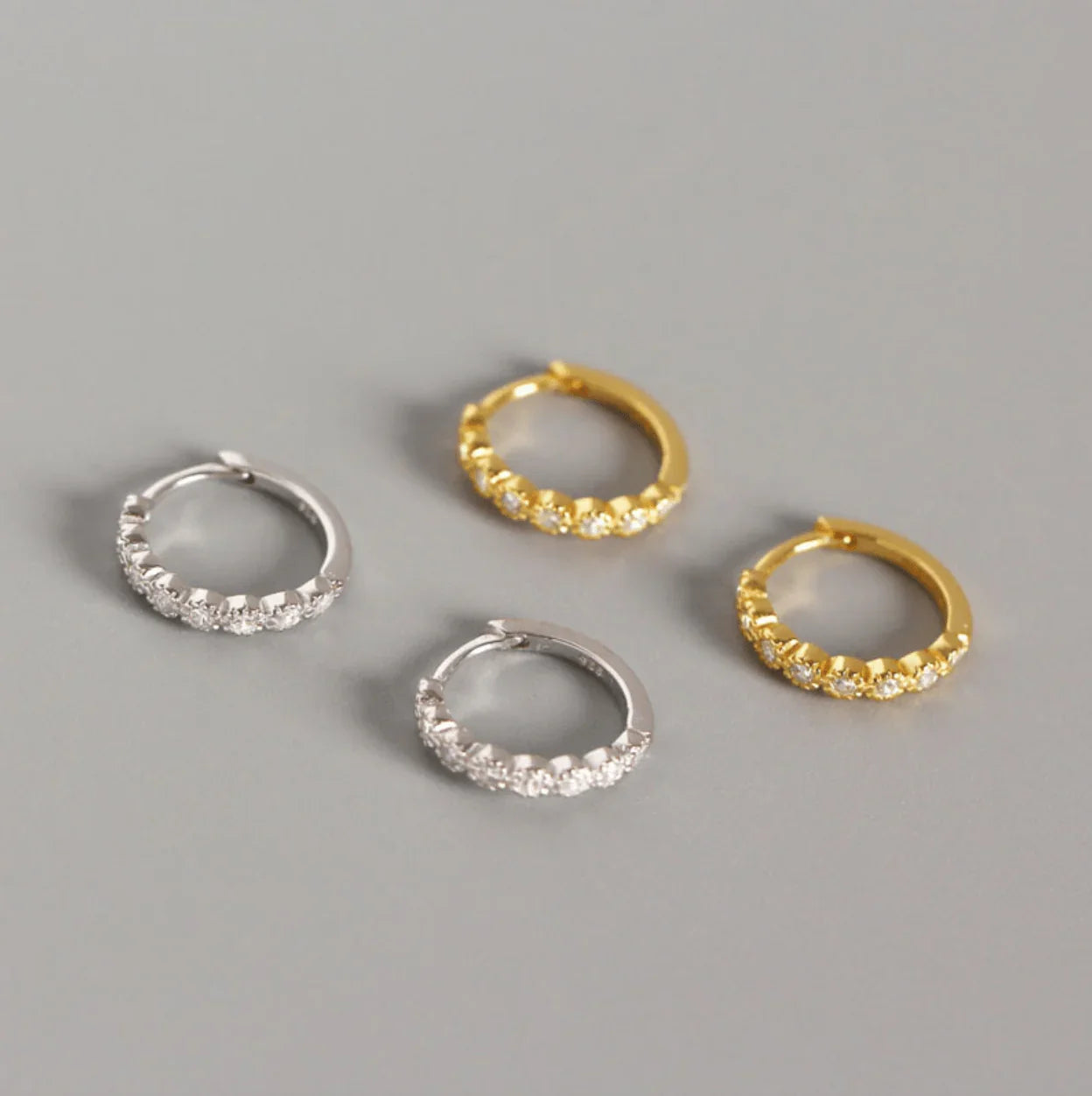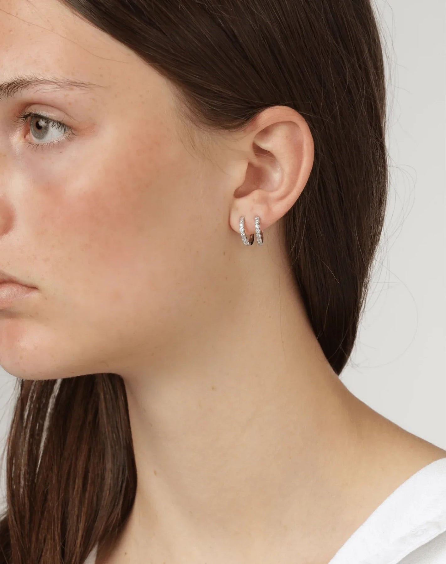 Silver hoops with zirconia stones and glossy finish