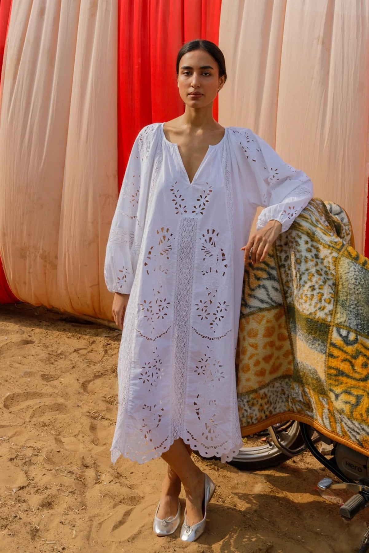 Mila kjolen fra Sissel Edelbo emmer af romantisk vintage-stemning med sine fine, detaljerede cutwork-broderier og tone-i-tone blondedetaljer. Kjolen er fremstillet i 100% økologisk bomuld, hvilket giver et let og luftigt udtryk.