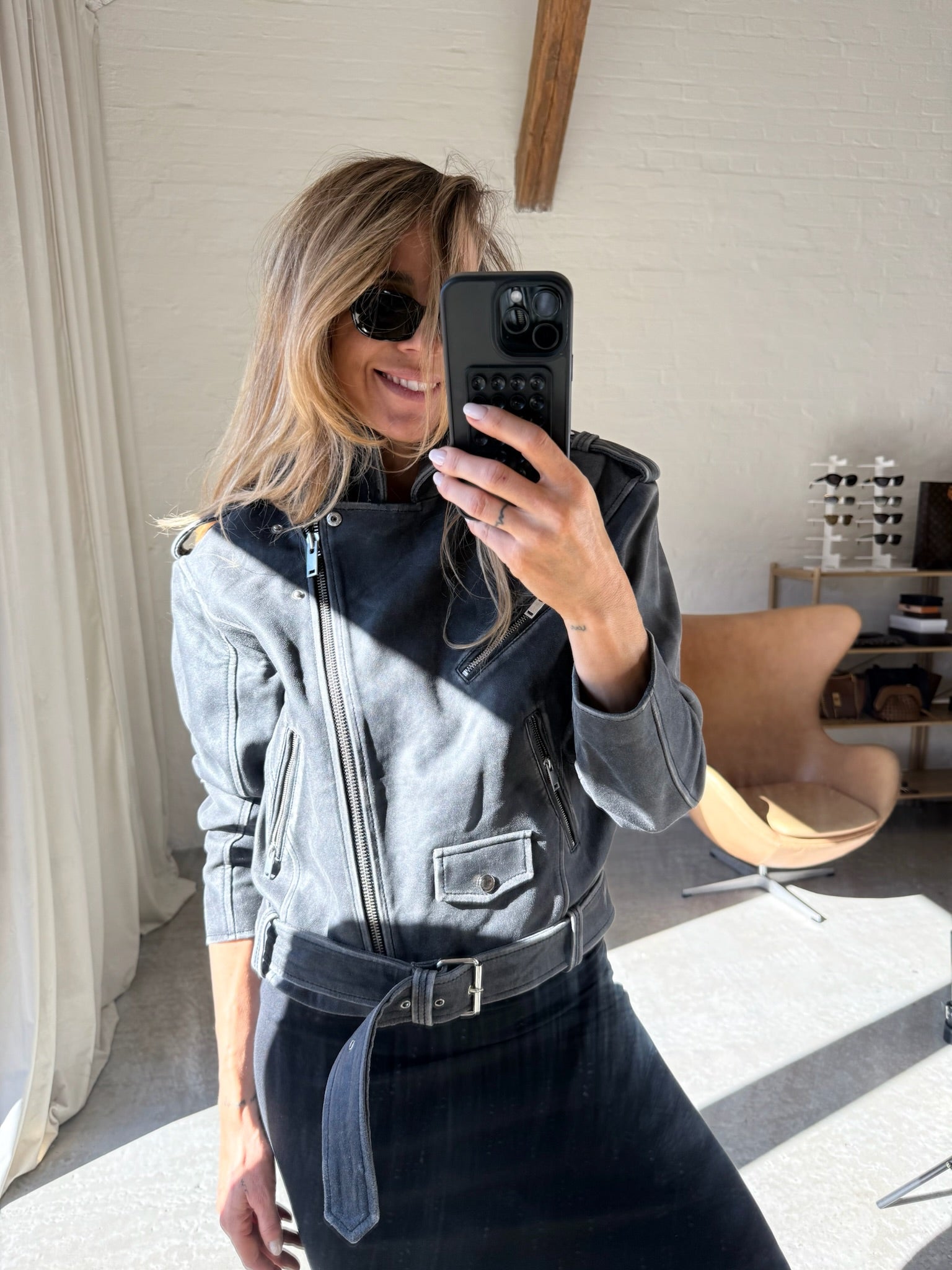 The jacket offers a good balance between function and fashion. The practical details mean you can wear it with confidence for any occasion. Whether you're heading to work, meeting friends or going to a concert, this jacket will give you a stylish look. The asymmetrical zip and the many pockets make the jacket both practical and trendy, while the adjustable belt at the waist allows you to adjust the fit as needed.