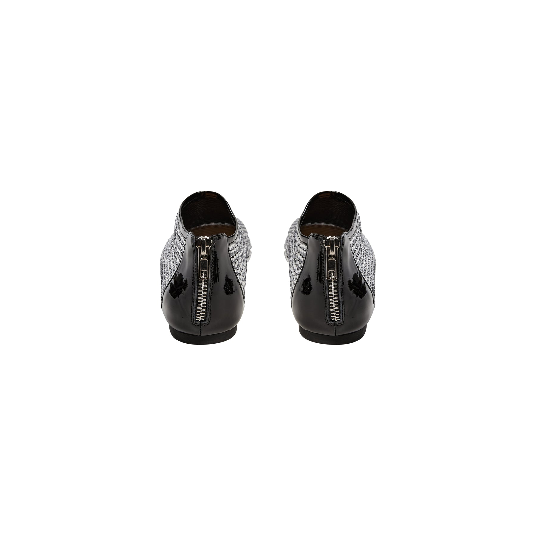 Den runde snude og den flade sål gør ballerinaen behagelig at have på hele dagen, mens den blanke laklook-hælkappe tilfører et stilrent twist. På bagsiden finder du en praktisk lynlåslukning, som gør det nemt at tage skoen af og på, uden at gå på kompromis med pasformen.